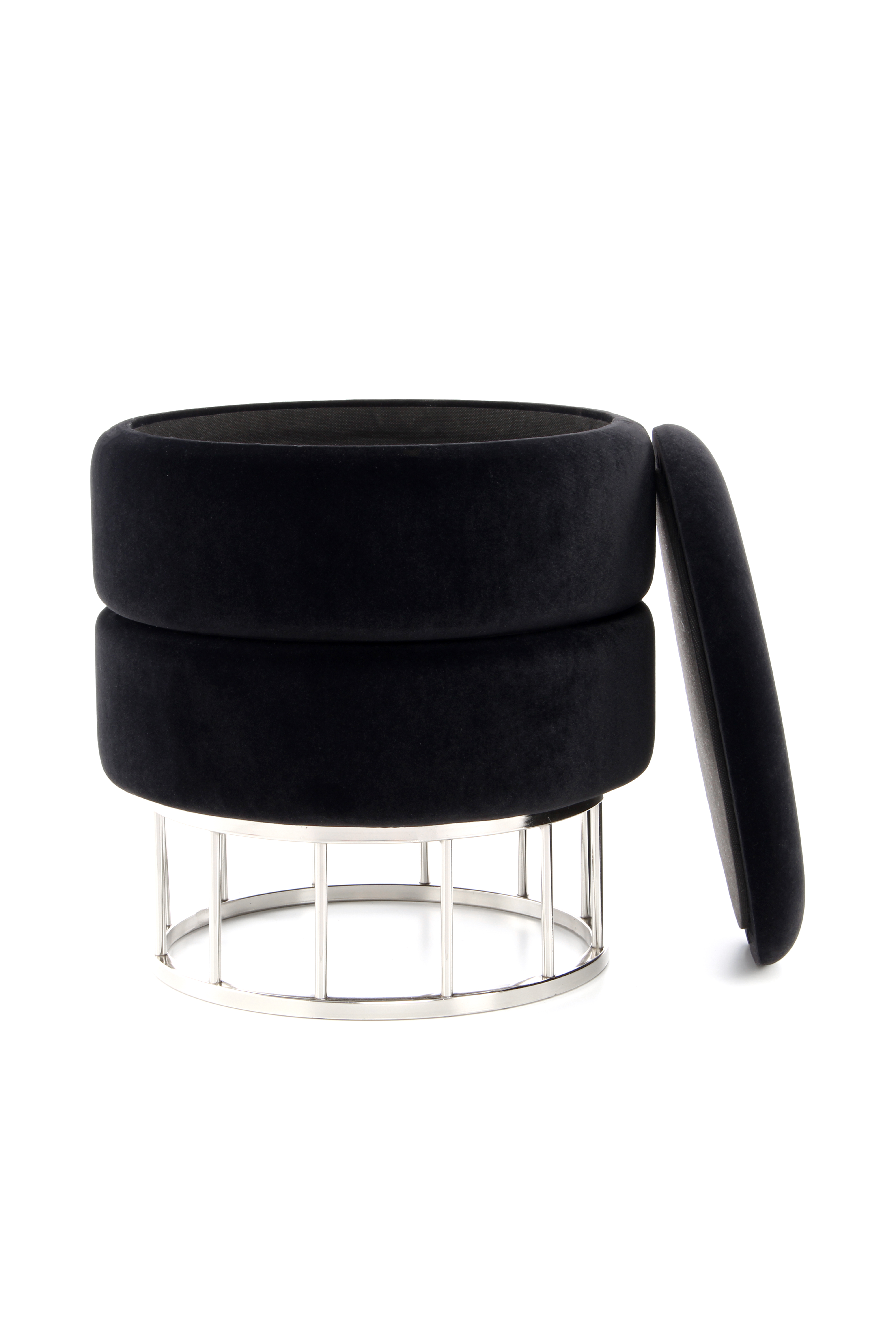 | Besonderheiten: | Hocker mit Stauraum, elegantes Metallgestell, glamouröses Design |