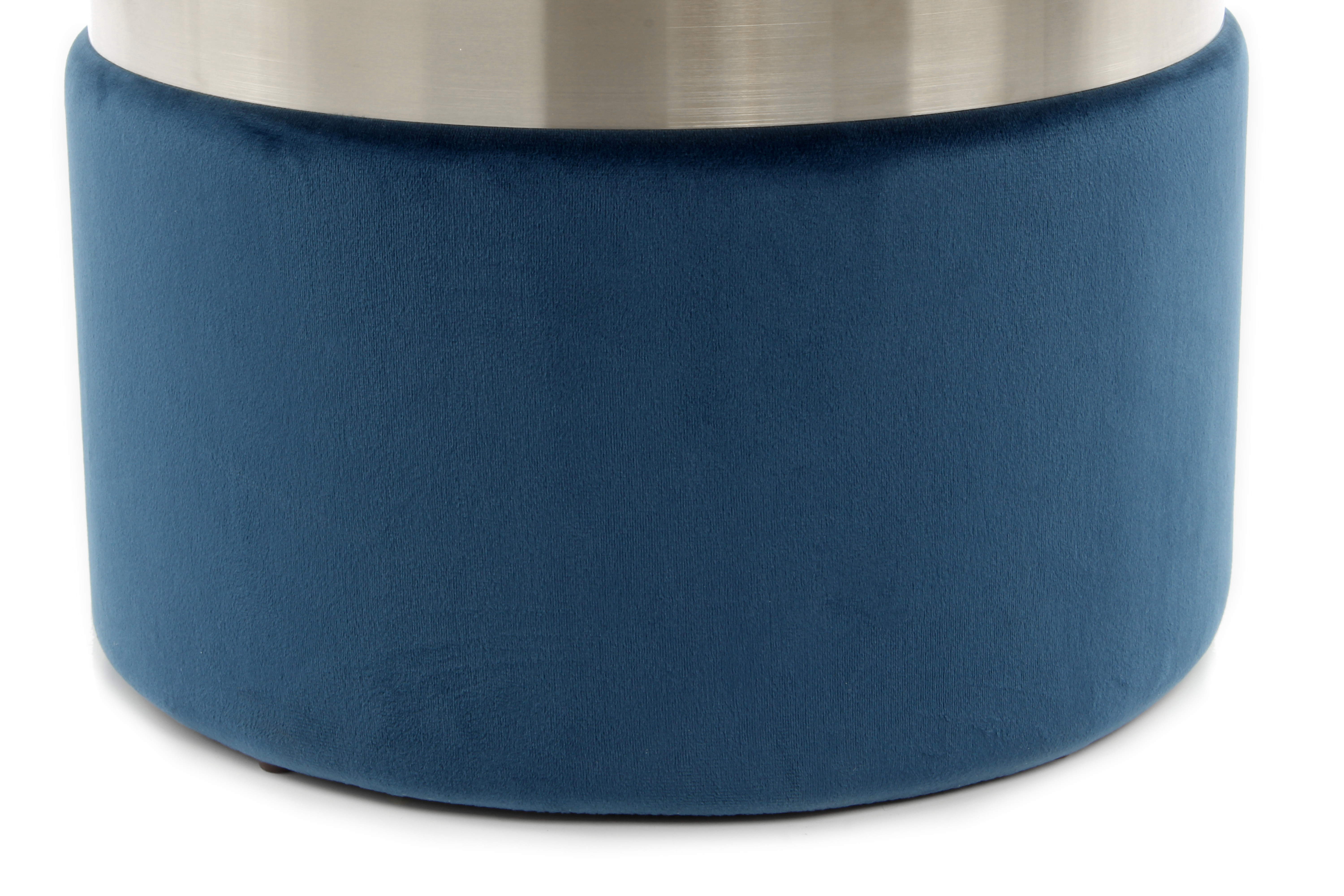 Mit diesem Set erhalten Sie zwei Hocker in unterschiedlichen Größen, aber gleichem Design. Die moderne zweifarbige Gestaltung erhält durch einen edlen Ring aus Metall einen glamourösen Charakter. Die beiden Farben werden durch den Ring optisch voneinander getrennt und bilden dennoch eine harmonische Einheit. Durch den samtweichen Bezug aus Stoff und die runde Form wirken die Hocker bereits optisch weich.