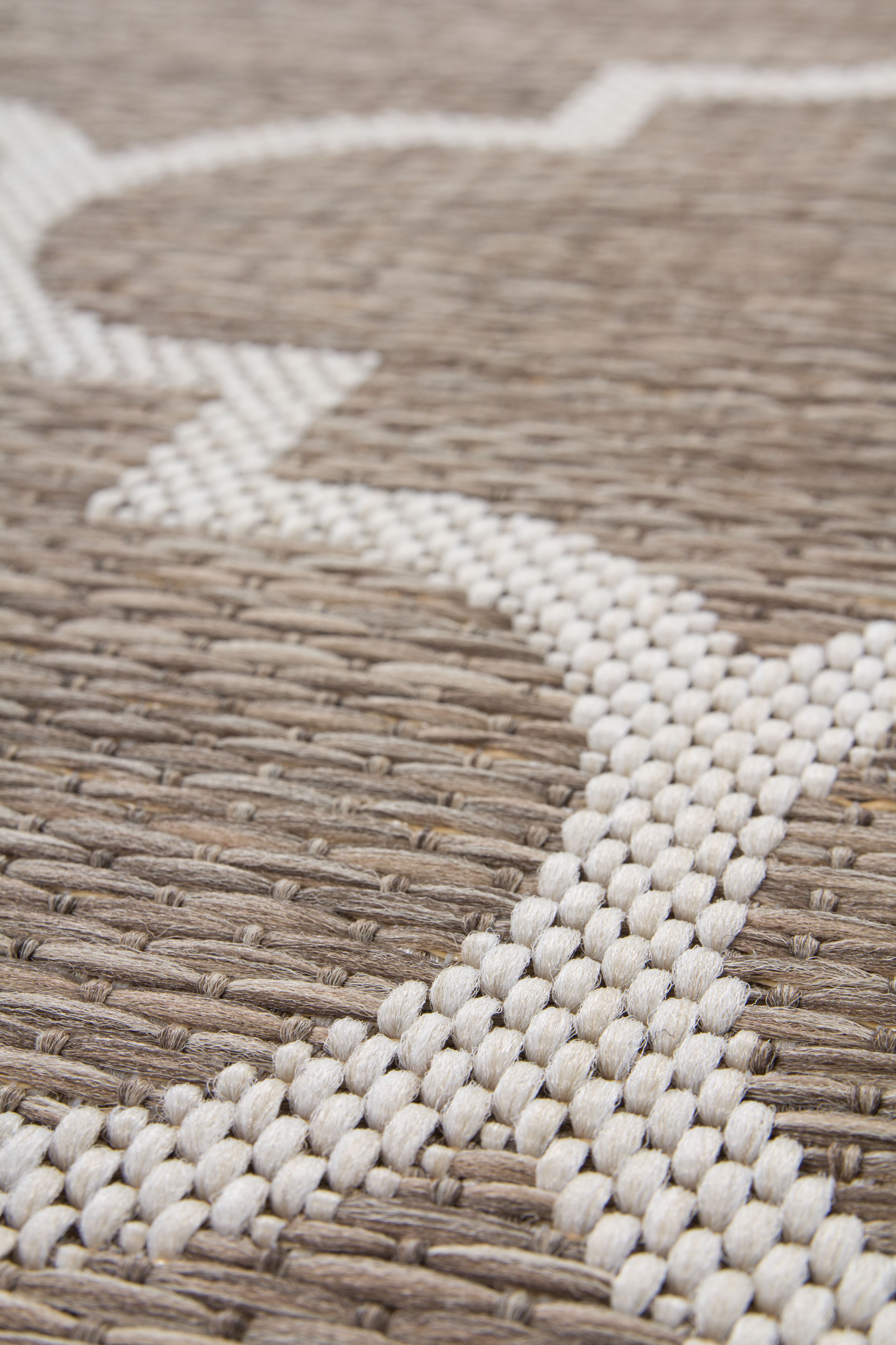 Der Flachflorteppich in Flecht-Optik mit trendigem Design setzt als absoluter Trendsetter setzt mediterrane Akzente in jeden Wohnbereich. Das Design unterstreicht jedes moderne Flair. Der natürliche Charakter zeugt von einem ganz eigenen Charme. Die beige melierten Farben des Flachflorteppichs verschmelzen optisch nahtlos mit seiner Umgebung. Die Naturoptik verleiht neue Kraft. Mit dem speziellen, flach gewebten Flor gestaltet sich dieser Flachflorteppich in Sisal-Optik zu einem alltagstauglichen Allrounder, der den unterschiedlichsten Wohneinrichtungen einen passenden Schliff verleiht und zudem innen und außen ausgelegt werden kann. Hohen Belastungen hält der Indoor-/ Outdoor-Teppich problemlos stand. Die dezent abgestuften Farben passen sich jeder Umgebung an. Der Teppich kann als "Eyecatcher" im Wohnzimmer oder als Vorleger im Flur sowie als Hingucker auf der Terrasse oder dem Balkon eingesetzt werden. Der robuste Flor steht in direktem Verhältnis zu seinem geometrischen Muster und unterstreicht den starken Charakter dieses Flachflorteppichs deutlich. Der Teppich ist ringsum durch eine Kettelung eingefasst, der jegliches Ausfransen verhindert. Feuchtigkeit hat keine Chance. Die Vorteile liegen auf der Hand: Günstig, top-modern, widerstandsfähig und pflegeleicht!