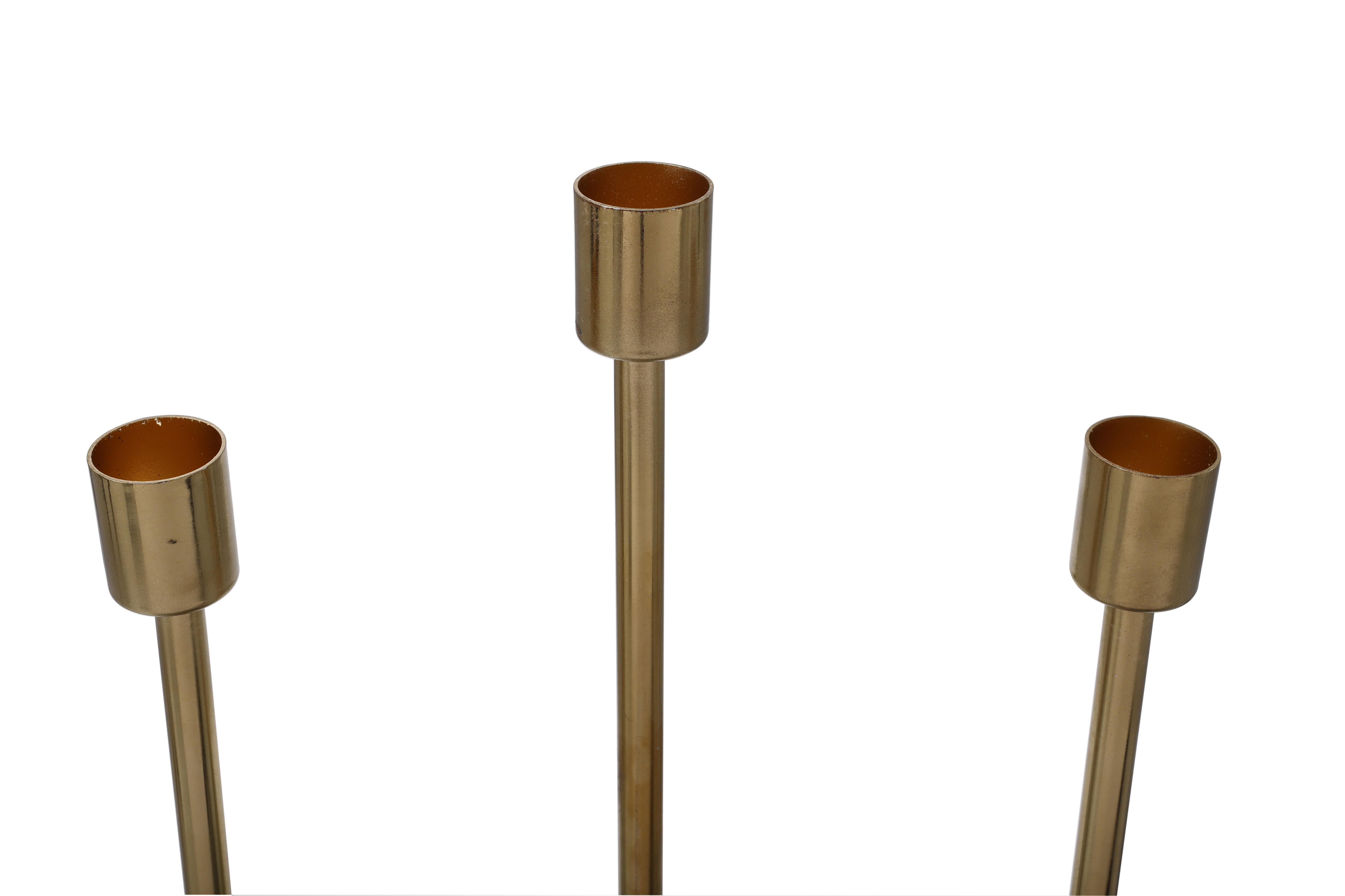 Auffällig, edel, außergewöhnlich - mit diesen Eigenschaften überzeugt der handgefertigte Kerzenständer in seinem äußeren Erscheinungsbild. Sein glänzendes Material aus Metall trägt nicht nur zu seiner edlen Optik bei, sondern verleiht ihm ein hohes Maß an Stabilität. Für Deko-Fans, die es schlicht und minimalistisch mögen, lässt sich der Ständer ebenso in Szene setzen wie in Kombination mit zahlreichen weiteren Dekoelementen. Ob allein oder in Kombination, dieses Schmustück lässt sich in jedem Raum einsetzen. Er schafft durch seinen edlen Look und die warmen Kerzen ein gemütliches Ambiente.