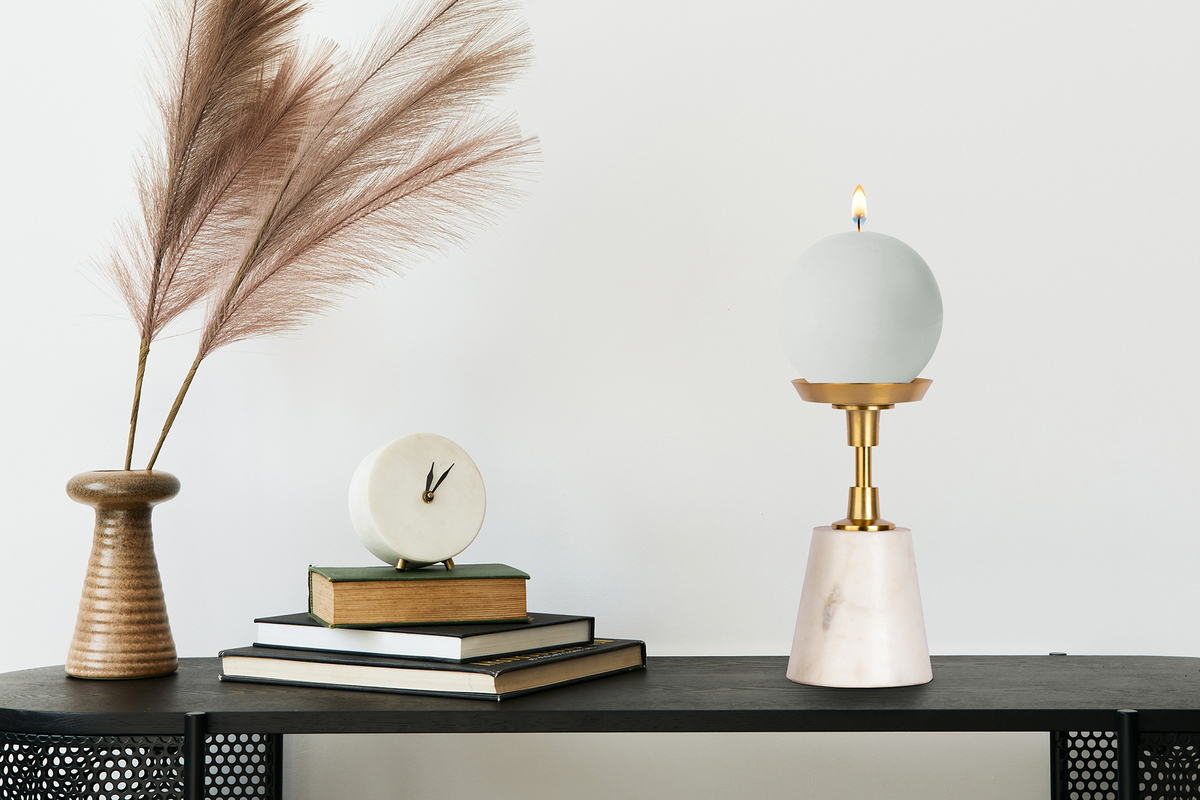 Dieser attraktive Kerzenhalter rückt alle Räumlichkeiten in das richtige Licht. Stilsicher und attraktiv vereint er gekonnt unterschiedliche Elemente zu einem luxuriösen Finish, ohne aufgedeckt zu wirken. Der Kerzenständer schafft dies durch seine Beschaffenheiten welche sich aus den hochwertigen Materialien Marmor und Eisen zusammensetzen. Das hervortretende Erscheinungsbild überträgt er spielend auf seine Umgebung. Der festliche gedeckte Tisch oder das alleinstehende Regal versetzt mit seinem Kerzenschein in ein gewisses Ambiente. Hervorzuheben sind die hochwertigen Materialien, die verarbeitet wurden. Der in Handarbeit gefertigte Kerzenhalter ist hervorragend verarbeitet. Der Marmorfuß und der aus Aluminium bestehende Halter passen einander hervorragend an. Im Lieferumfang sind keine Kerzen enthalten.