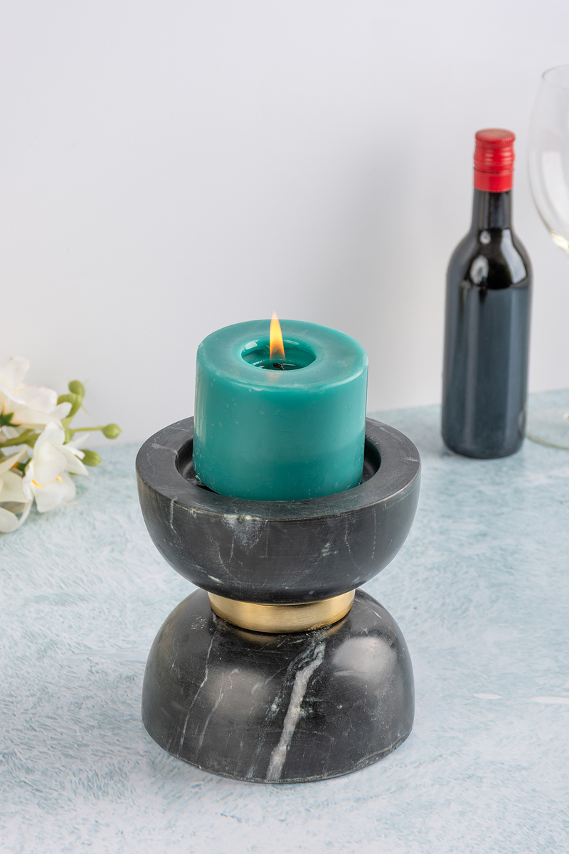 | Besonderheiten: | Dekorative Kerzenhalter aus Marmor mit Metall-Ring |