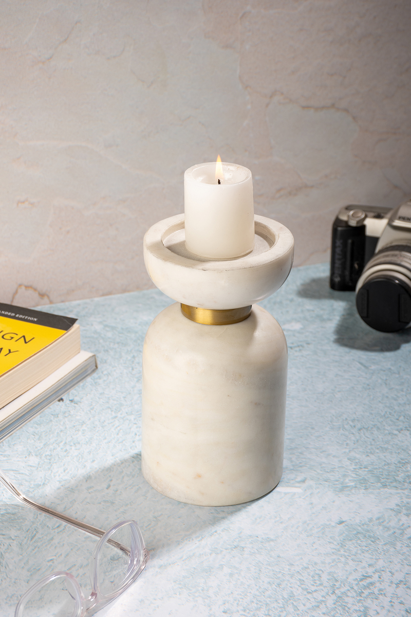 | Besonderheiten: | Dekorative Kerzenhalter aus Marmor mit Metall-Ring |