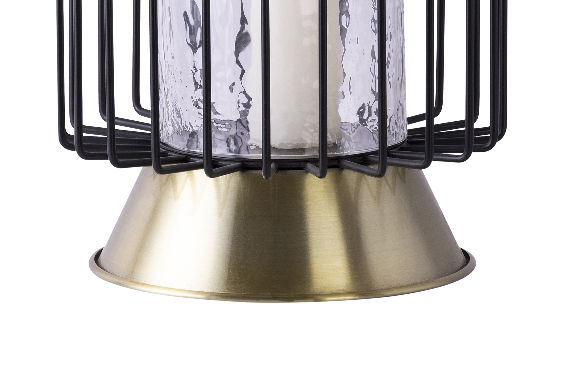 Das moderne Windlicht ist geprägt von Design mit Stabgitter und spiegelt so seinen Design-Look wider. Das luxuriöse Finish verleiht sowohl Innen- als auch überdachten Außenräumen einen edlen Touch und ist vielseitig einsetzbar. Dies stellt der Ständer auf einem festlich gedeckten Esstisch, zwischen Blumen auf der Fensterbank oder aber auch allein stets aufs Neue unter Beweis. In der Dämmerung und bei Nacht spendet er ein angenehmes Licht und sorgt so für angenehme Atmosphäre. Die Fertigung per Hand verwendet ausschließlich hochwertige Materialien aus Eisen und Glas. Diese Kombination verleiht einen einzigartigen Charakter und erstreckt sich über ein Angebot aus Gold und Silber. Die Kerze wird durch ein elegantes Glas vor Wind geschützt. Im Lieferumfang ist keine Kerze oder weitere Materialien der Dekoration enthalten.