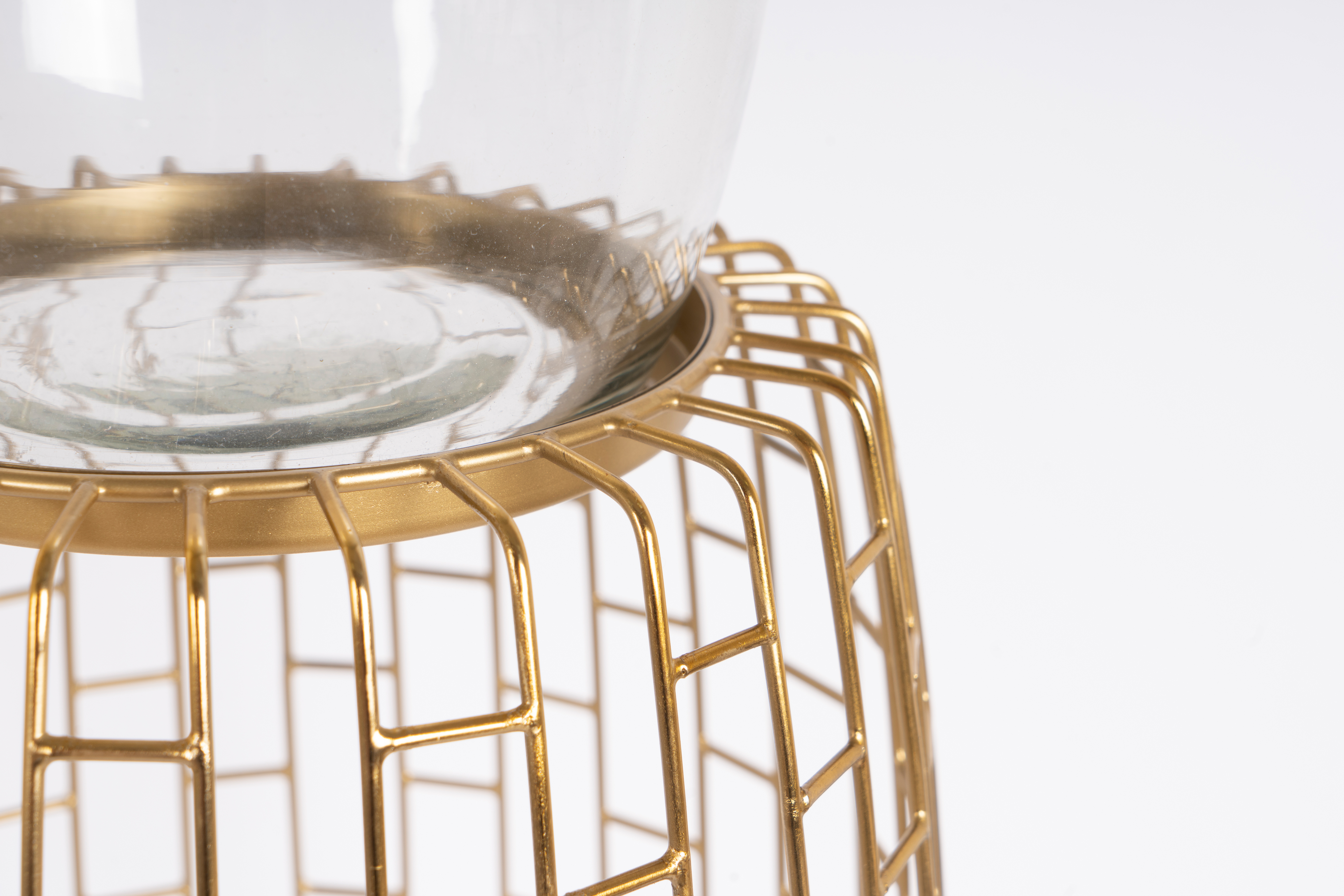 Das moderne Windlicht ist geprägt von Design mit Stabgitter und spiegelt so seinen Design-Look wider. Das luxuriöse Finish verleiht sowohl Innen- als auch überdachten Außenräumen einen edlen Touch und ist vielseitig einsetzbar. Dies stellt der Ständer auf einem festlich gedeckten Esstisch, zwischen Blumen auf der Fensterbank oder aber auch allein stets aufs Neue unter Beweis. In der Dämmerung und bei Nacht spendet er ein angenehmes Licht und sorgt so für angenehme Atmosphäre. Die Fertigung per Hand verwendet ausschließlich hochwertige Materialien aus Eisen und Glas. Diese Kombination verleiht einen einzigartigen Charakter und erstreckt sich über ein Angebot aus Gold und Silber. Die Kerze wird durch ein elegantes Glas vor Wind geschützt. Im Lieferumfang ist keine Kerze oder weitere Materialien der Dekoration enthalten.