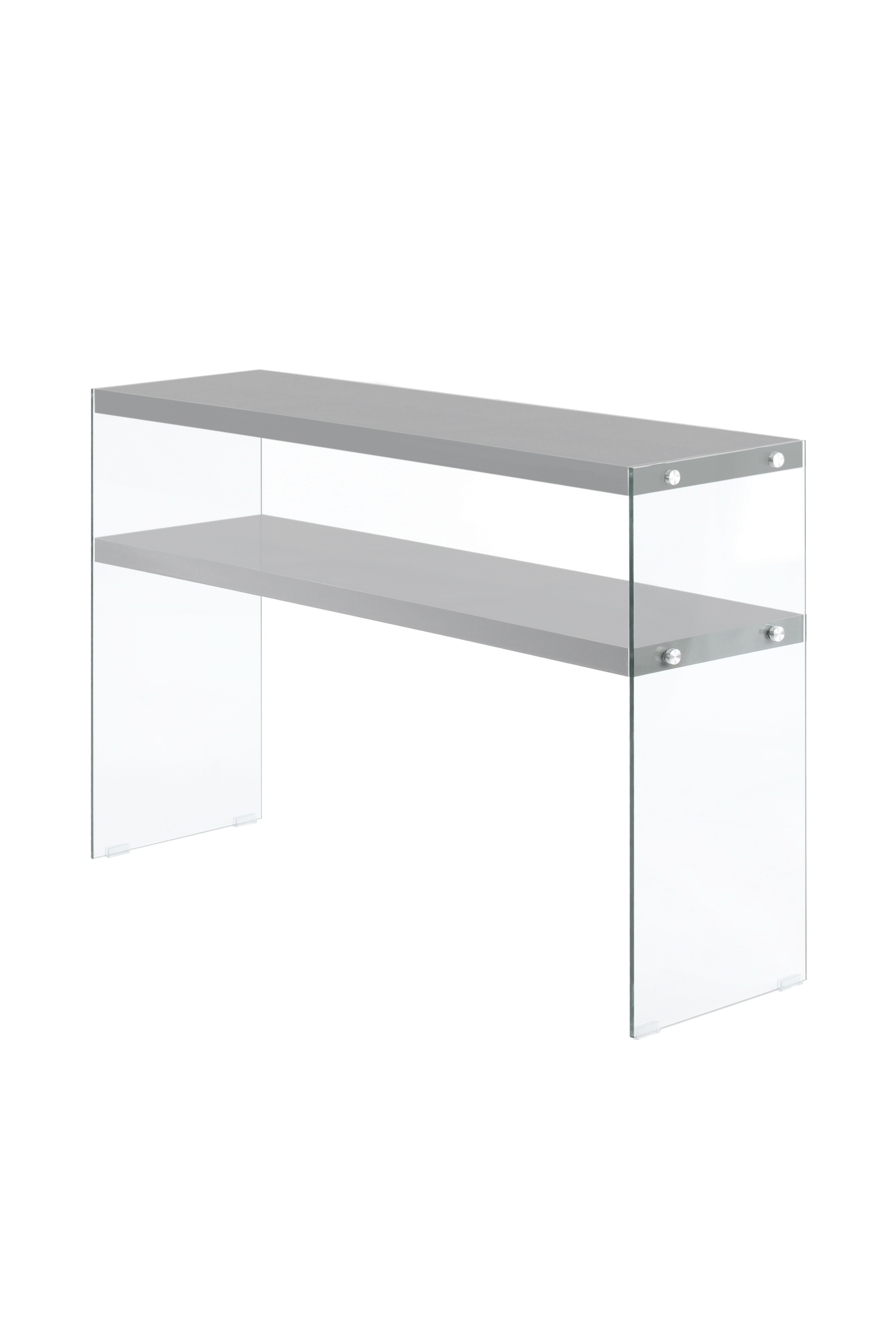 Das moderne Design dieses Konsolentisches zeichnet sich durch die transparenten Glas-Seitenwände und die unifarbenen Ablageflächen aus. Gleichzeitig ist das Design unaufdringlich und kann in verschiedene Einrichtungsstile integriert werden. Der Konsolentisch ist Bestandteil einer Möbelserie, sodass Sie durch die Kombination mit weiteren Möbelstücken ein einheitliches, harmonisches Gesamtambiente im Raum schaffen können.