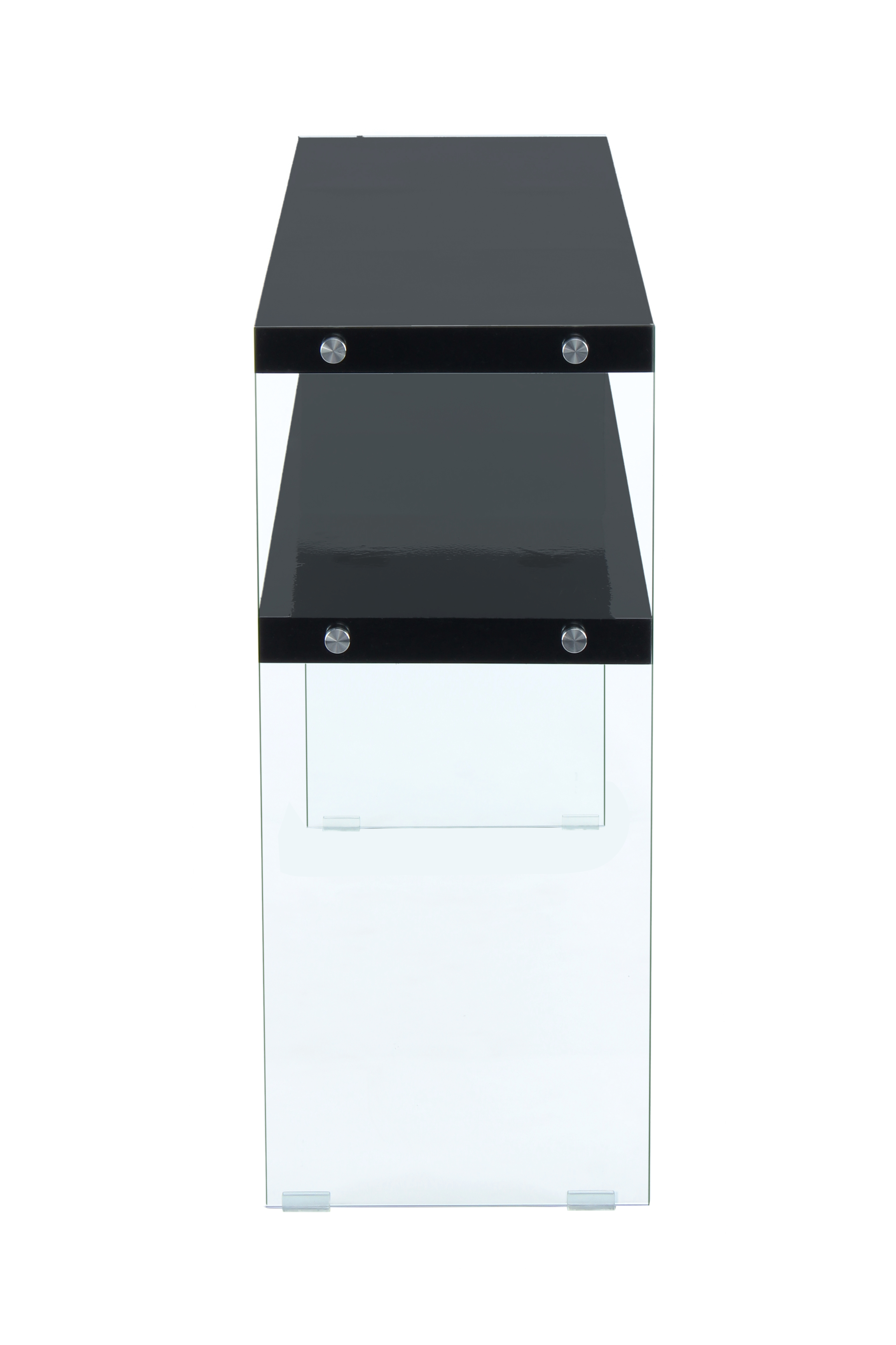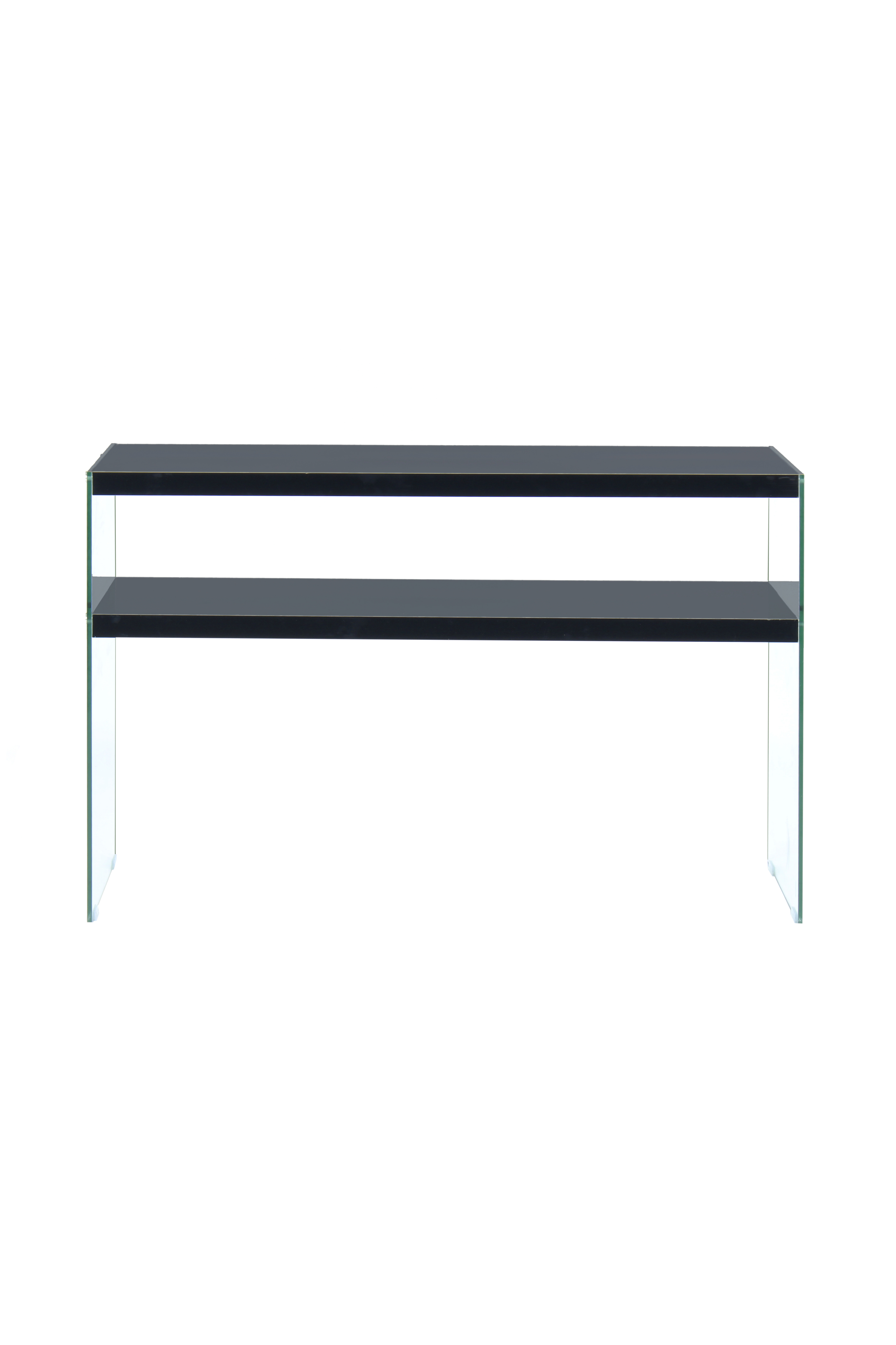 Das moderne Design dieses Konsolentisches zeichnet sich durch die transparenten Glas-Seitenwände und die unifarbenen Ablageflächen aus. Gleichzeitig ist das Design unaufdringlich und kann in verschiedene Einrichtungsstile integriert werden. Der Konsolentisch ist Bestandteil einer Möbelserie, sodass Sie durch die Kombination mit weiteren Möbelstücken ein einheitliches, harmonisches Gesamtambiente im Raum schaffen können.