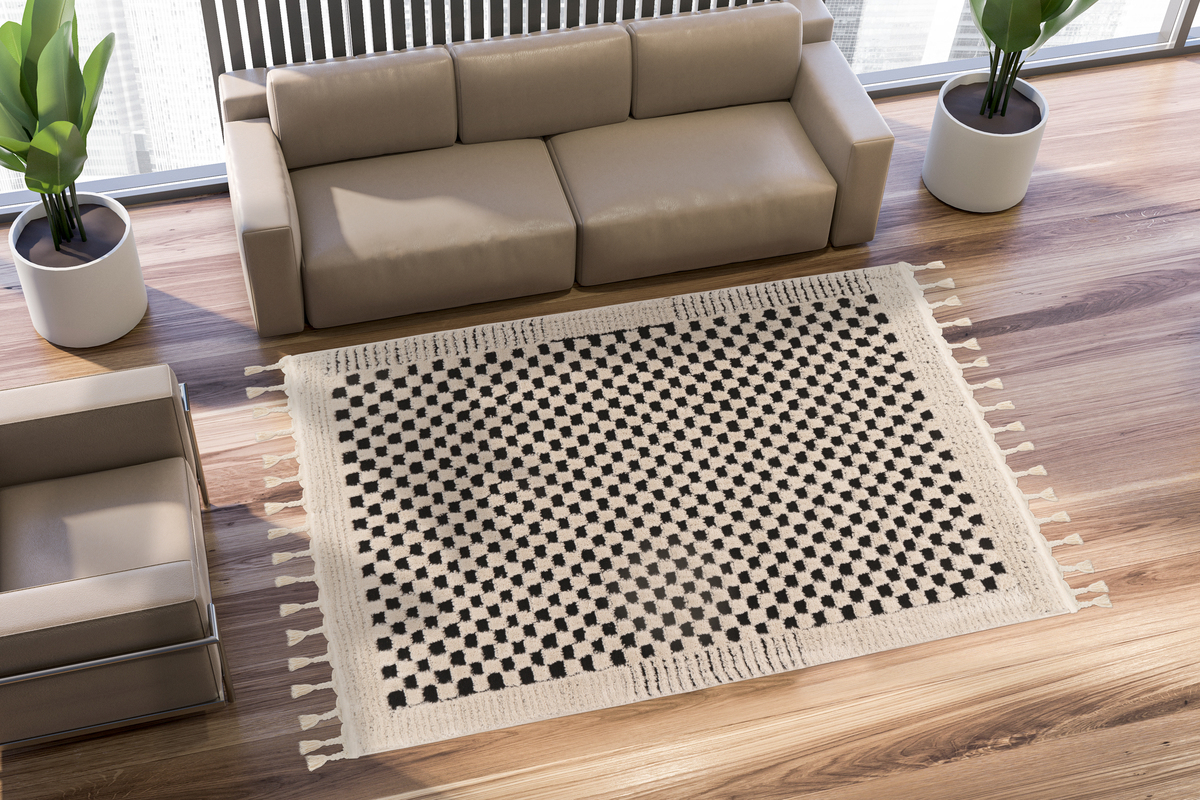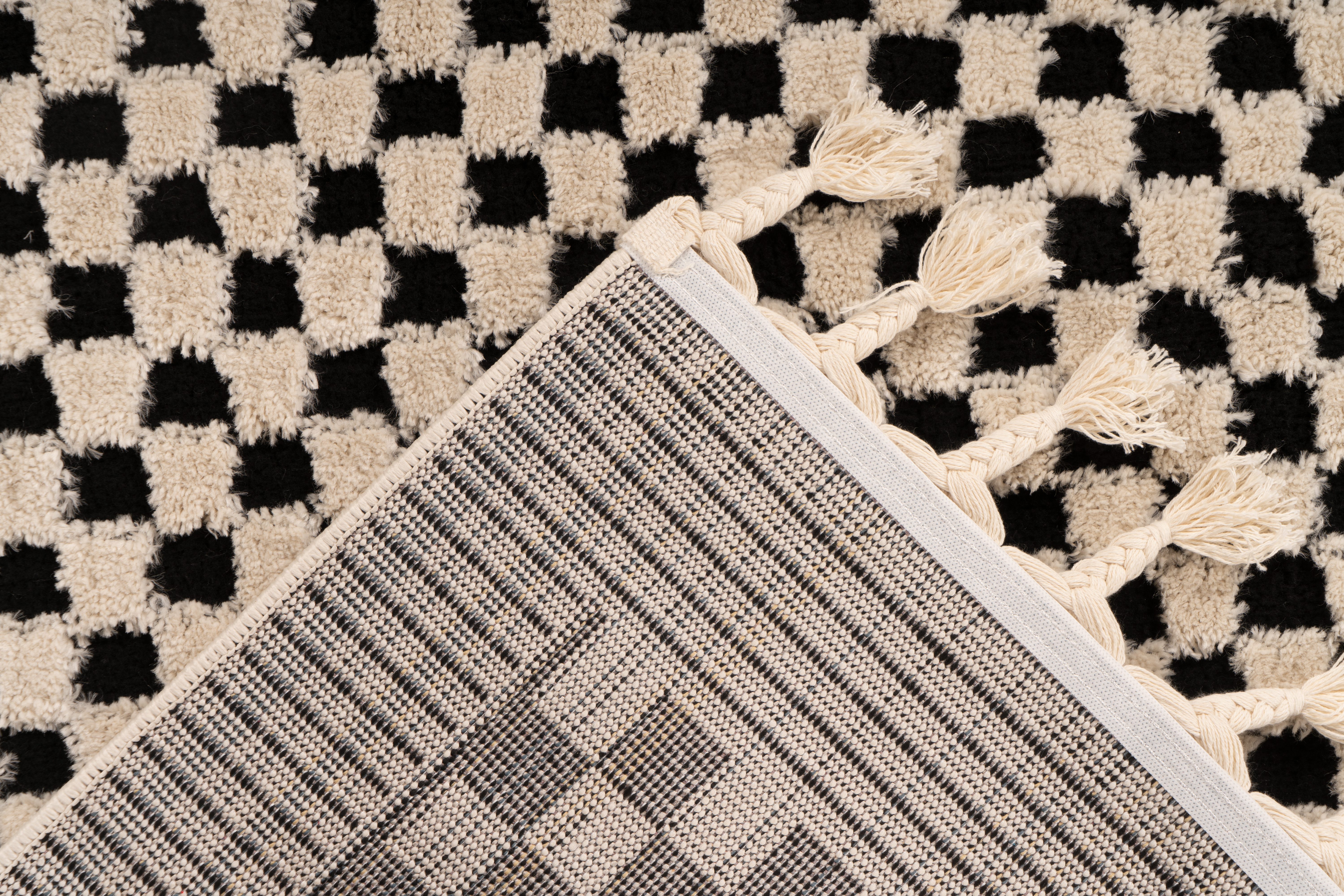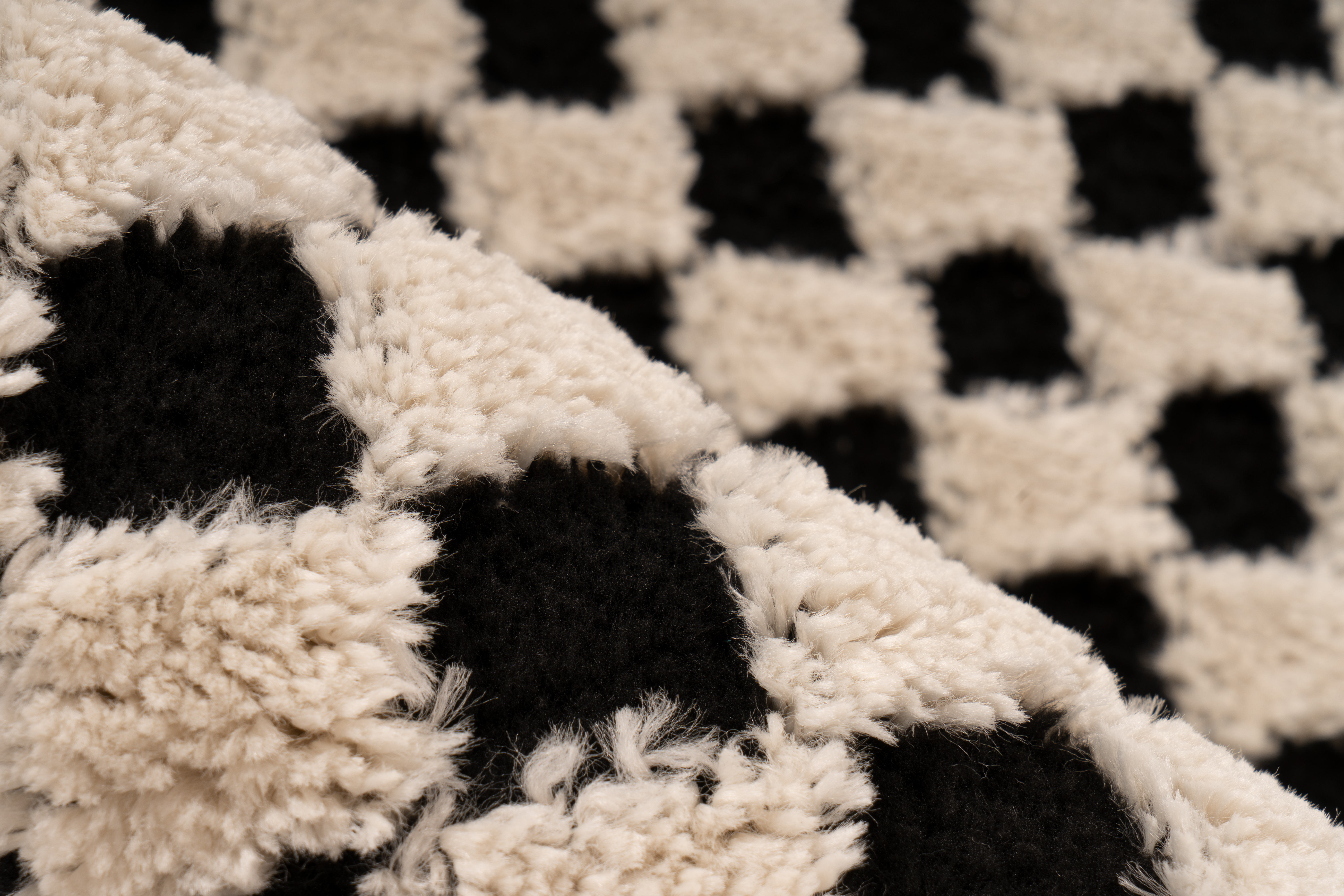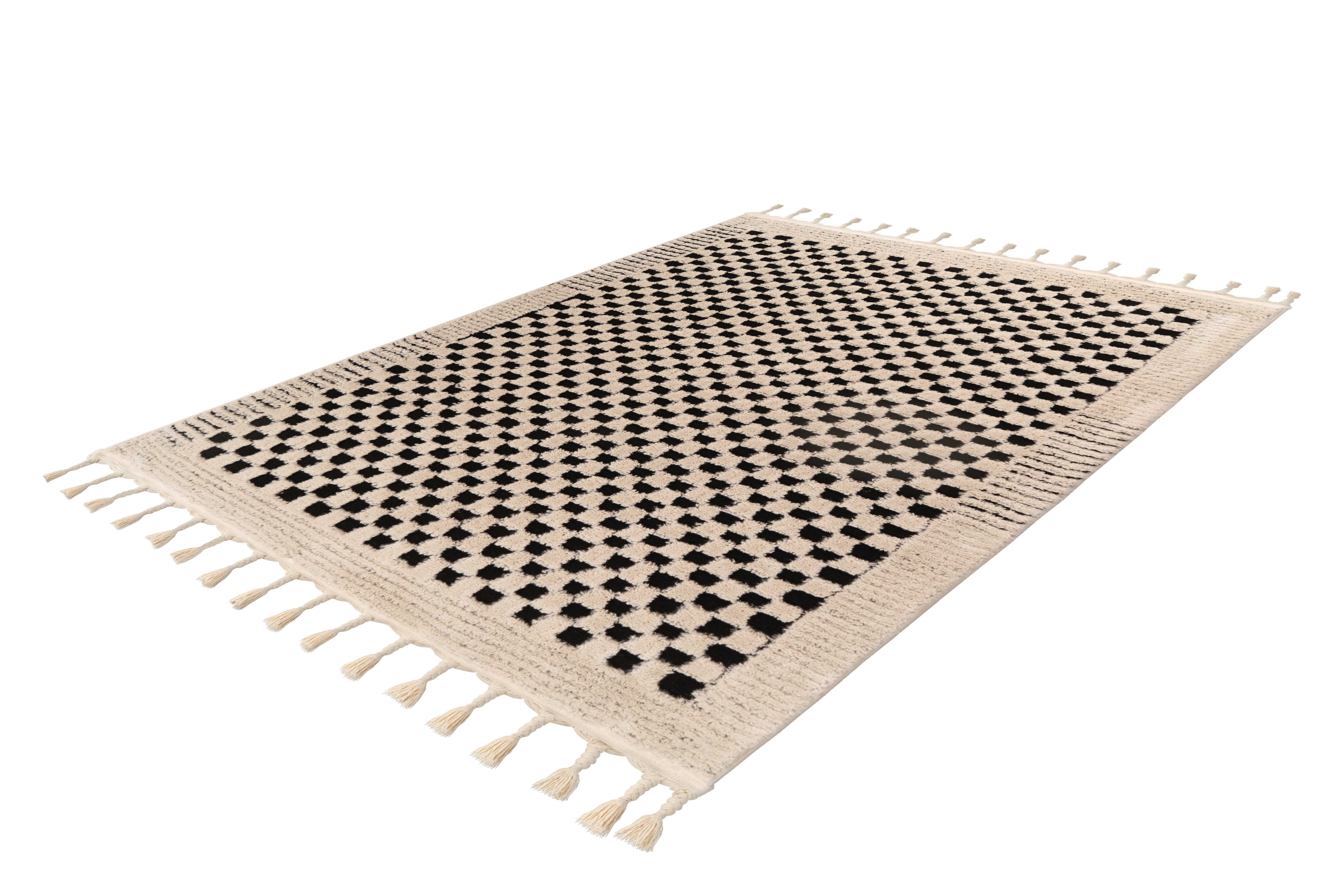 Der elegante Teppich Lovis überzeugt durch sein Schachbrettmuster und ist damit ein stilvoller Blickfang für jedes Apartment. Mit seinen 144.000 Pionts/qm verfügt er über eine besonders weiche Haptik und fühlt sich sehr angenehm an. Der 22mm hohe Flor ist dennoch pflegeleicht und eignet sich für jedes beliebige Zimmer. Spezifikationen: • erhältliche Farben: Weiß • Florhöhe: ca. 22mm • Material: 100% Polypropylen • Größe: 80cm x 150cm / 120cm x 170cm / 160cm x 230cm