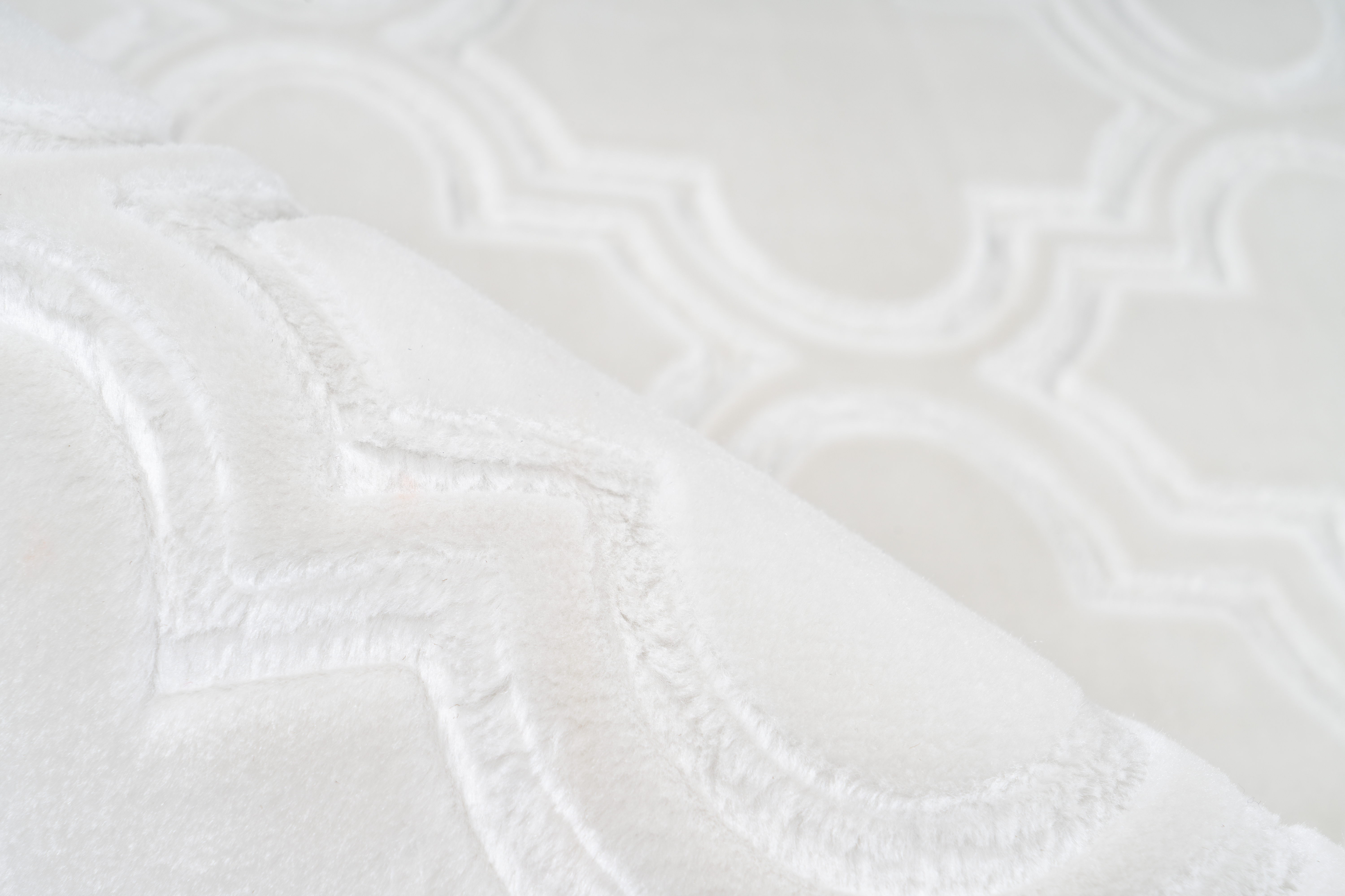 Mit diesem Teppichmodell holen Sie sich ein ganz besonderes Highlight nach Hause. Der einfarbige Kuschelflor ist mit einem Prägedruck versehen, der für eine zweifarbige Wirkung sorgt und gleichzeitig einen 3D-Effekt mit sich bringt. Durch die niedrigeren geprägten Fasern entstehen Höhen und Tiefen in der Oberfläche, die dem Teppich seine besondere Optik verleihen. Rundherum ist der Teppich mit einem Saumband versehen, was ein Ausfransen verhindert und gleichzeitig das Gesamtbild abrundet. Das stilvolle Design passt in nahezu jeden Einrichtungsstil und sorgt in den Wohnräumen für eine angenehme Wohlfühlatmosphäre. In der Haptik fühlt sich der Flor an wie echtes Kaninchenfell und ist somit besonders weich und komfortabel. Durch die Anti-Rutsch-Noppen auf dem Rücken wird unerwünschtes Verrutschen des Teppichs verhindert. So kann er optimal als Vorleger vor dem Bett im Schlafzimmer genutzt werden, um direkt beim Aufstehen das angenehme Gefühl unter den Füßen spüren zu können. Aber auch für gemütliche Stunden vor dem Kamin ist dieser Teppich optimal geeignet. Kombinieren Sie den Teppich mit passenden Heimtextilien und schaffen Sie mit stimmiger Beleuchtung eine kuschelige und gemütliche Atmosphäre in Ihrem Zuhause. Der Teppich kann in seiner tatsächlichen Farbgebung abweichen. Durch unterschiedlichen Lichteinfall und verschiedene Streichrichtungen des Flors können unterschiedliche Farbnuancen entstehen.