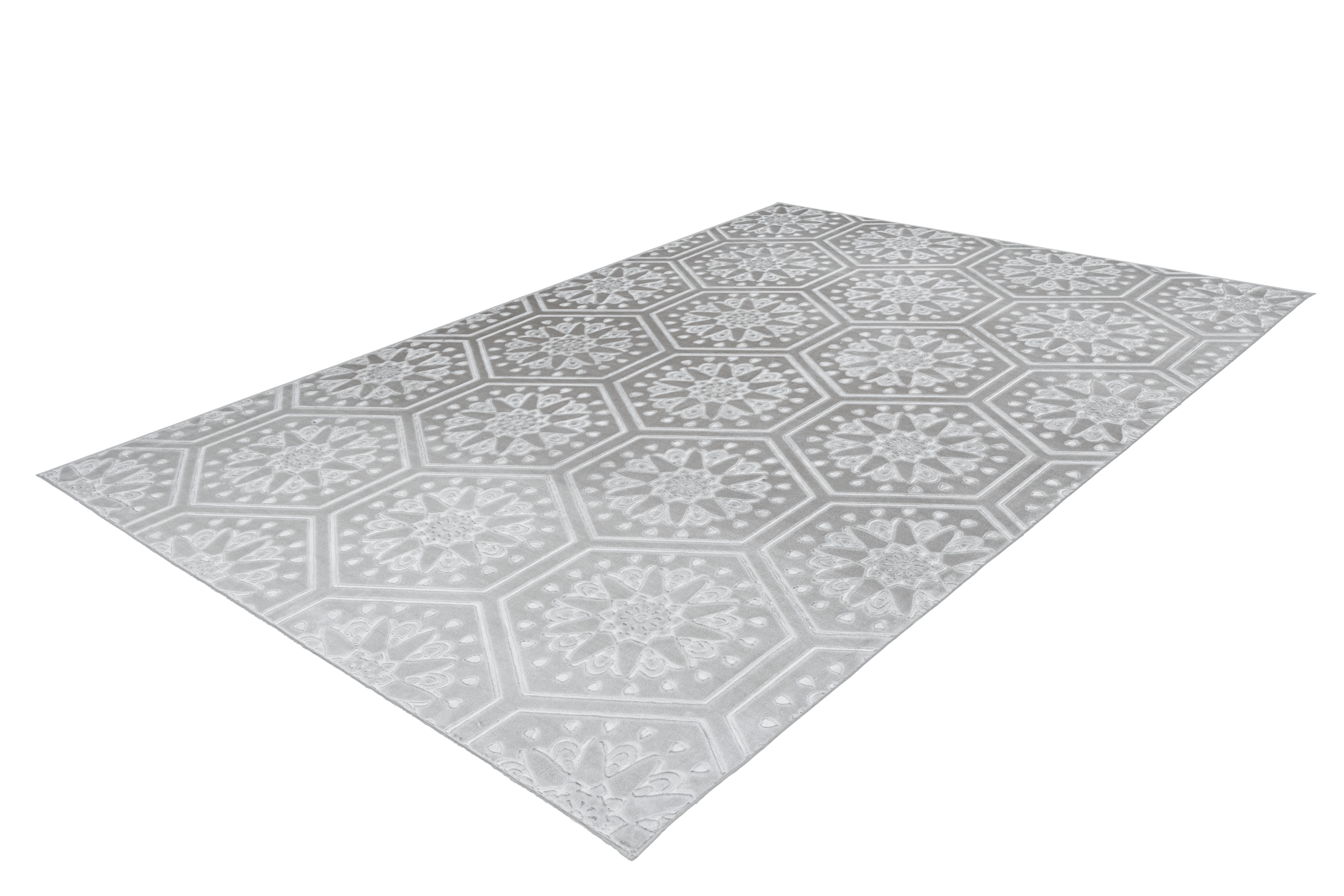 Mit diesem Teppichmodell holen Sie sich ein ganz besonderes Highlight nach Hause. Der einfarbige Kuschelflor ist mit einem Prägedruck versehen, der für eine zweifarbige Wirkung sorgt und gleichzeitig einen 3D-Effekt mit sich bringt. Durch die niedrigeren geprägten Fasern entstehen Höhen und Tiefen in der Oberfläche, die dem Teppich seine besondere Optik verleihen. Rundherum ist der Teppich mit einem Saumband versehen, was ein Ausfransen verhindert und gleichzeitig das Gesamtbild abrundet. Das stilvolle Design passt in nahezu jeden Einrichtungsstil und sorgt in den Wohnräumen für eine angenehme Wohlfühlatmosphäre. In der Haptik fühlt sich der Flor an wie echtes Kaninchenfell und ist somit besonders weich und komfortabel. Durch die Anti-Rutsch-Noppen auf dem Rücken wird unerwünschtes Verrutschen des Teppichs verhindert. So kann er optimal als Vorleger vor dem Bett im Schlafzimmer genutzt werden, um direkt beim Aufstehen das angenehme Gefühl unter den Füßen spüren zu können. Aber auch für gemütliche Stunden vor dem Kamin ist dieser Teppich optimal geeignet. Kombinieren Sie den Teppich mit passenden Heimtextilien und schaffen Sie mit stimmiger Beleuchtung eine kuschelige und gemütliche Atmosphäre in Ihrem Zuhause. Der Teppich kann in seiner tatsächlichen Farbgebung abweichen. Durch unterschiedlichen Lichteinfall und verschiedene Streichrichtungen des Flors können unterschiedliche Farbnuancen entstehen.