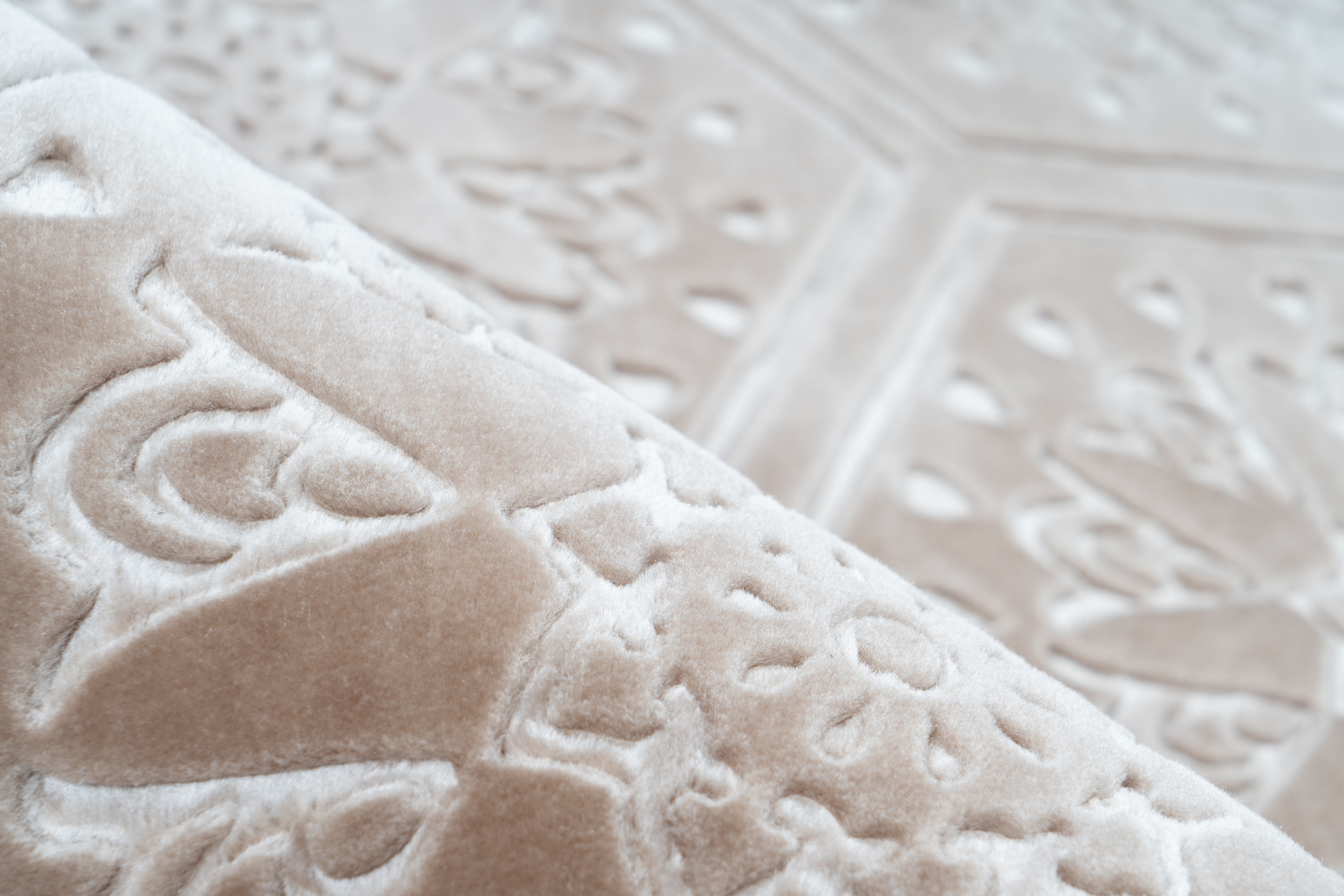 Mit diesem Teppichmodell holen Sie sich ein ganz besonderes Highlight nach Hause. Der einfarbige Kuschelflor ist mit einem Prägedruck versehen, der für eine zweifarbige Wirkung sorgt und gleichzeitig einen 3D-Effekt mit sich bringt. Durch die niedrigeren geprägten Fasern entstehen Höhen und Tiefen in der Oberfläche, die dem Teppich seine besondere Optik verleihen. Rundherum ist der Teppich mit einem Saumband versehen, was ein Ausfransen verhindert und gleichzeitig das Gesamtbild abrundet. Das stilvolle Design passt in nahezu jeden Einrichtungsstil und sorgt in den Wohnräumen für eine angenehme Wohlfühlatmosphäre. In der Haptik fühlt sich der Flor an wie echtes Kaninchenfell und ist somit besonders weich und komfortabel. Durch die Anti-Rutsch-Noppen auf dem Rücken wird unerwünschtes Verrutschen des Teppichs verhindert. So kann er optimal als Vorleger vor dem Bett im Schlafzimmer genutzt werden, um direkt beim Aufstehen das angenehme Gefühl unter den Füßen spüren zu können. Aber auch für gemütliche Stunden vor dem Kamin ist dieser Teppich optimal geeignet. Kombinieren Sie den Teppich mit passenden Heimtextilien und schaffen Sie mit stimmiger Beleuchtung eine kuschelige und gemütliche Atmosphäre in Ihrem Zuhause. Der Teppich kann in seiner tatsächlichen Farbgebung abweichen. Durch unterschiedlichen Lichteinfall und verschiedene Streichrichtungen des Flors können unterschiedliche Farbnuancen entstehen.