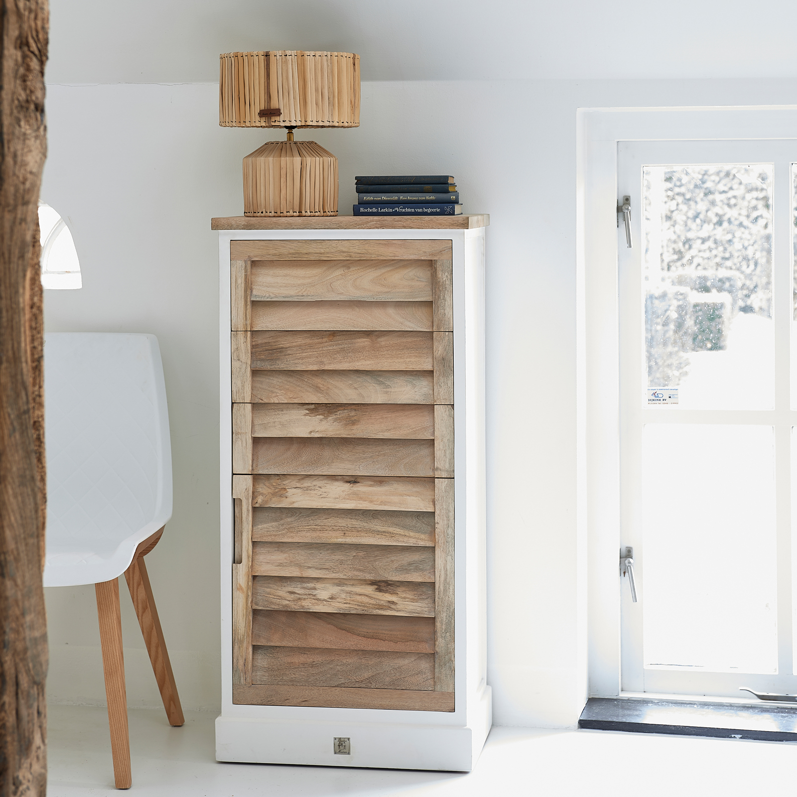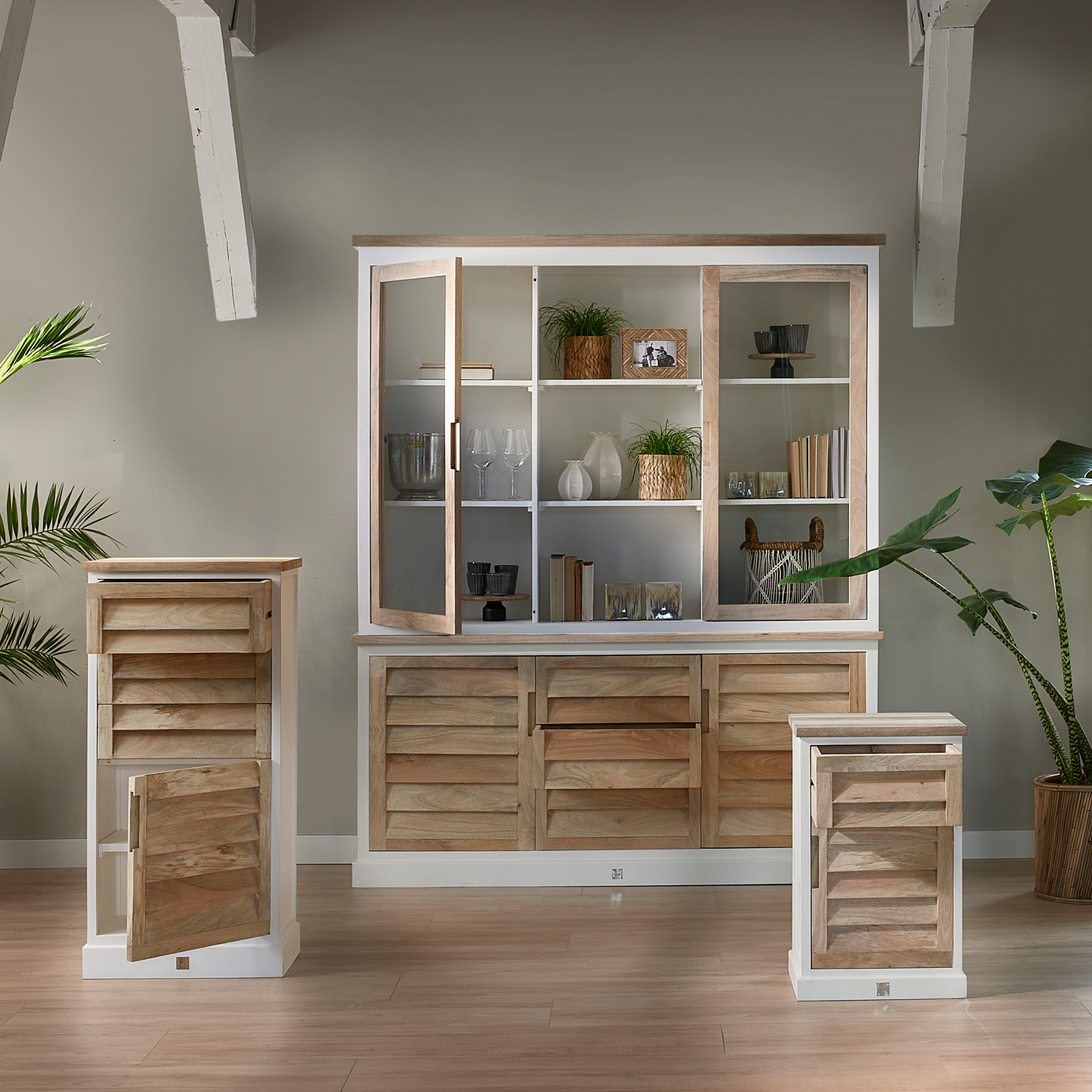 Bringen Sie Strandhausatmosphäre in Ihr Zuhause, mit den Möbeln der Pacifica-Serie. Diese Möbelserie wurde nun um Schlafzimmermöbel erweitert, wie zum Beispiel diese Kommode. Die Kommode ist 1,15 Meter hoch und hat drei Schubladen sowie eine Tür, alle vier mit unsichtbarem Griff und Softclose-Mechanismus.