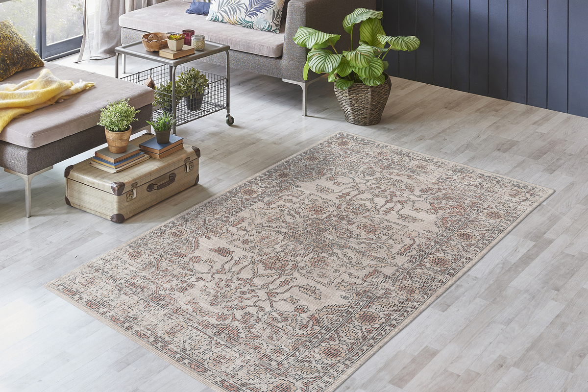 Der digital bedruckte Teppich Percy besteht zu einem großen Teil aus Baumwolle und teilweise aus Polyester. Er ist etwa 13mm hoch und hat ein verwaschenes Design. Das macht den Teppich nicht nur optisch anziehend, sondern auch sehr angenehm im Gefühl. Der trendige Vintage-Look rundet das Bild des tollen Teppichs ab und überzeugt auf ganzer Linie! Spezifikationen: • erhältliche Farben: Beige / Taupe • Florhöhe: ca. 13mm • Material: 75% Baumwolle, 25% Polyester • Größe: 80cm x 150cm / 120cm x 170cm / 160cm x 230cm