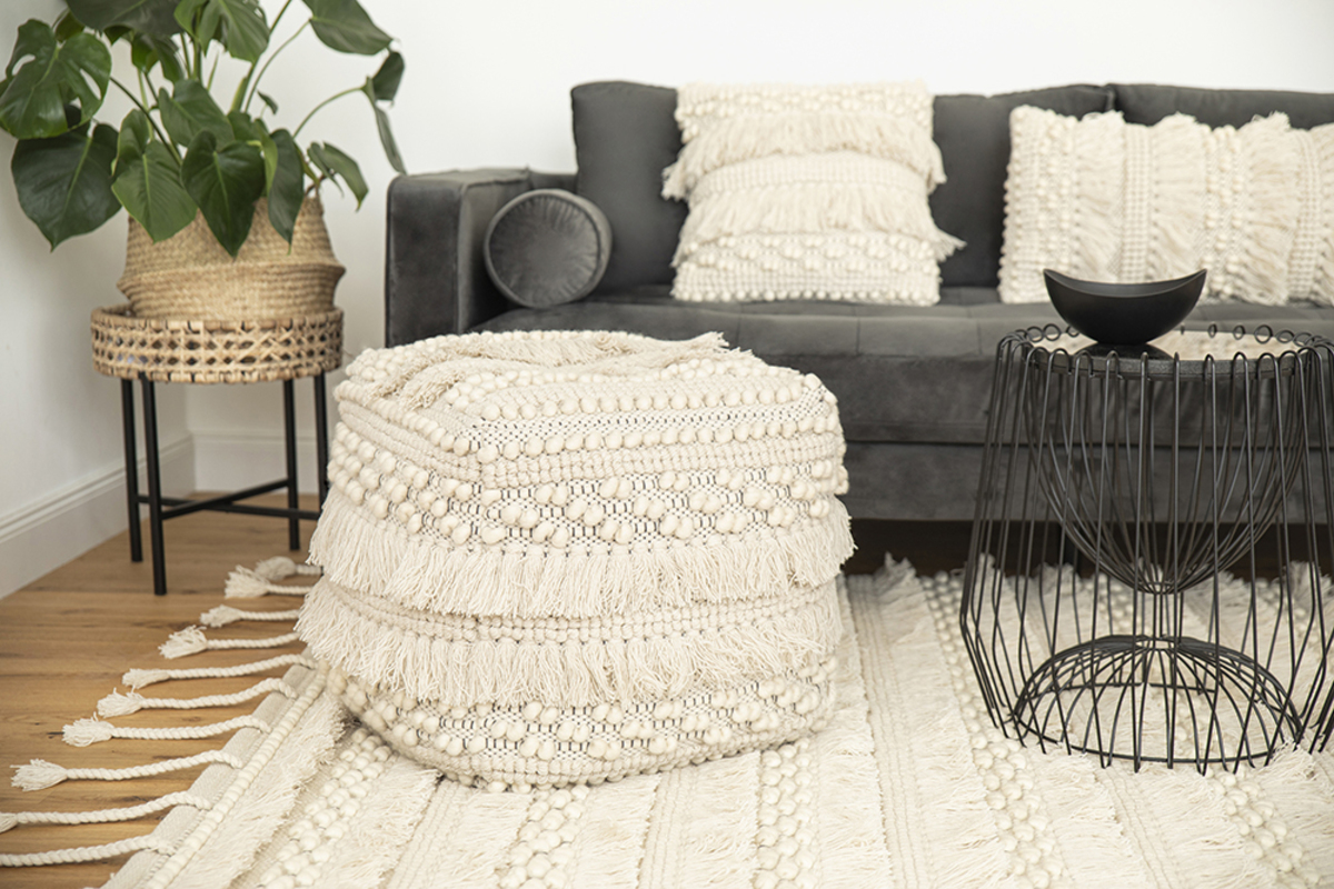 Dieser Hocker bringt eine angenehme Atmosphäre mit sich und sorgt für ein entspanntes Raumklima. Seine Beschaffenheit an sich vermittelt bereits beim Ansehen einen einladenden Eindruck. Die schön platzierten Fransen und Quasten, welche typisch für den Boho-Style sind, unterstreichen zusätzlich sein Erscheinungsbild. Dank dieser Strukturen sind sie charaktergebend bei unterschiedlich einfallendem Licht. Eingesetzt als Element in der Gestaltung einer Vielzahl von Innenräumen, hinterlässt er bleibenden Eindruck in Wohnräumen und mausert sich so zum Stilelement schlechthin. Seine Funktionalität ist zudem nicht zu vernachlässigen. Die hervorragende Polsterung sorgt für wunderbares Sitzerlebnis und lädt zum Verweilen ein. Die Varianten unterscheiden sich durch eine Bauweise mit oder ohne Beine aus schönem Holz, welche in beiden Ausführungen sehr stabil sind. Das verwendete Obermaterial besteht aus reiner Wolle. Das Naturmaterial ist belastbar und leicht in der Pflege. Das aus Neuseeland stammende Material wurde in Handarbeit produziert und genügt so höchsten Ansprüchen an Qualität.