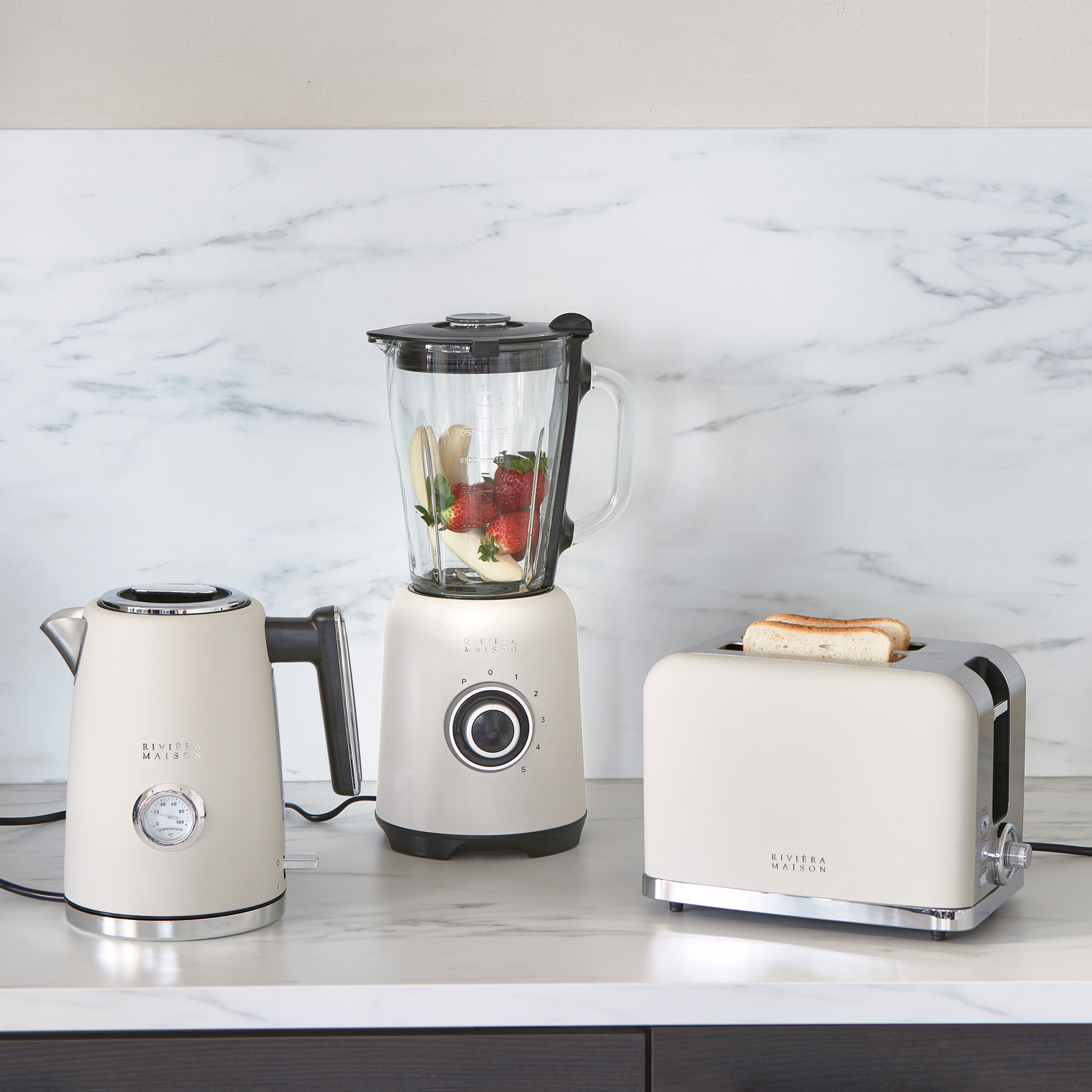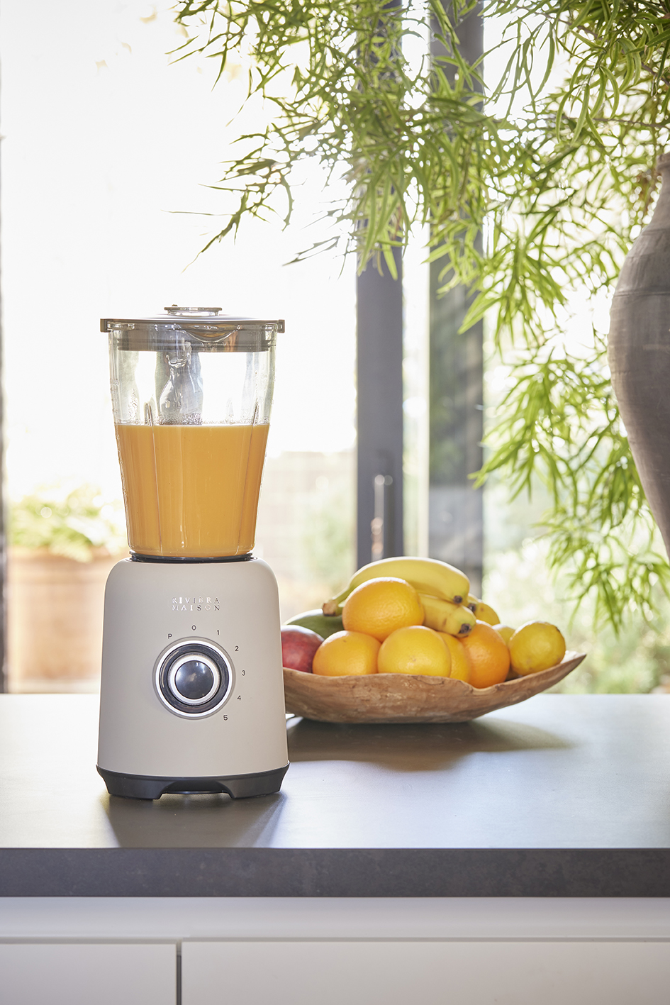 Tauchen Sie ein in die Küche mit den Küchengeräten von Riviera Maison. Dies ist der Classic Blender, eine Küchenmaschine mit verschiedenen Einstellungen für unterschiedliche Zubereitungen. So eignet sich dieser Mixer zum Beispiel auch zum Zerkleinern von Eiswürfeln. Für zusätzliche Stabilität sorgen die vier Saugnäpfe unter dem taupefarbenen Edelstahlsockel.