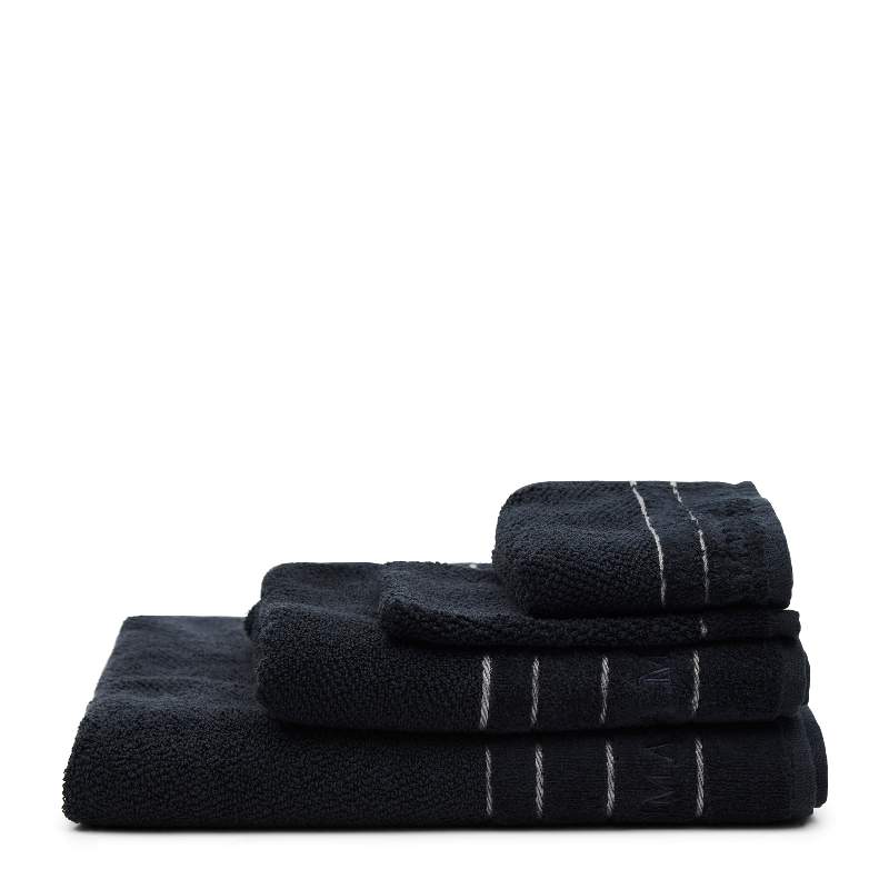Die Verwendung dieses sanften, schwarzen Handtuchs ist ein Verwöhnmoment für Ihre Gäste. Das Gästehandtuch ist Teil der neuen Luxusserie eleganter Badtextilien. Das Gästehandtuch hat eine moderne Struktur und verfügt an der Unterseite über eine Samtbordüre mit zwei Zierstreifen und einer Stickerei mit dem Text „Rivièra Maison“.