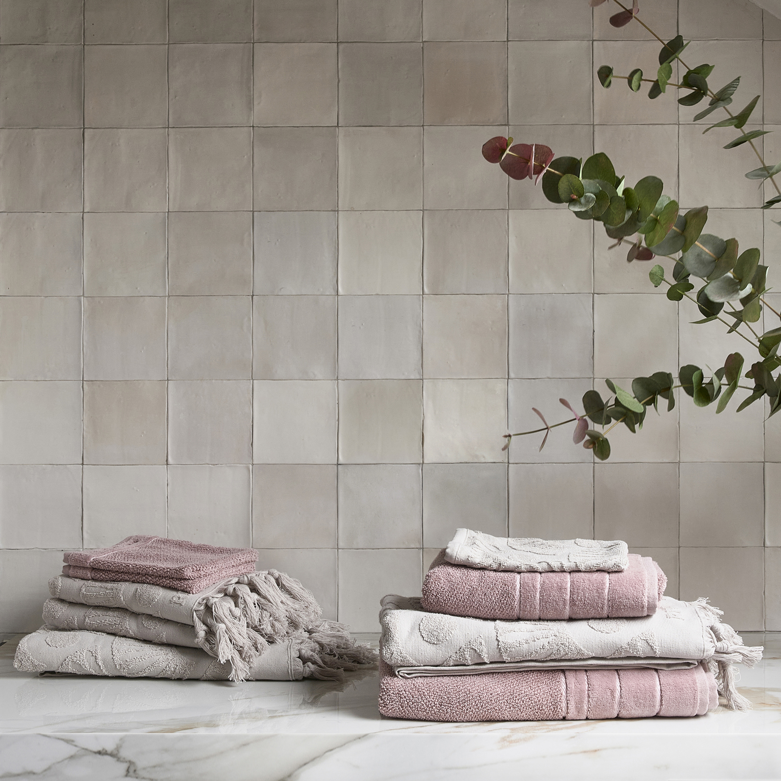 Brauchen Sie einen neuen Satz Badtextilien? Dann wählen Sie diese herrlichen Handtücher aus der RM Elegant-Serie. Die neue Kollektion zeichnet sich durch die Verwendung von robuster Baumwolle aus, mit der das Abtrocknen zum wahren Erlebnis wird. Auch an den Look wurde gedacht: eine modische Struktur, eine Samtbordüre und eine gestickte Signatur von „Rivièra Maison“.