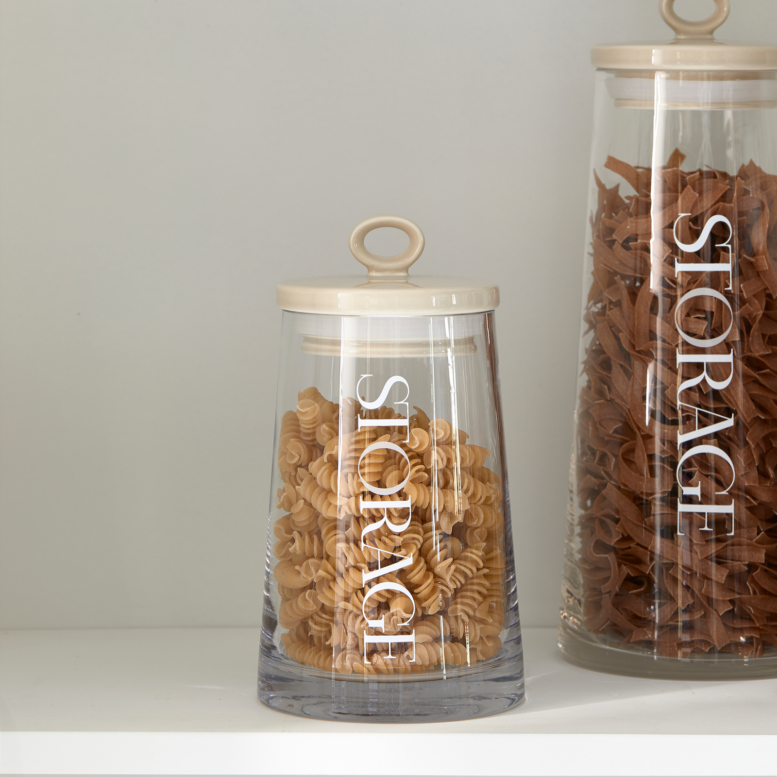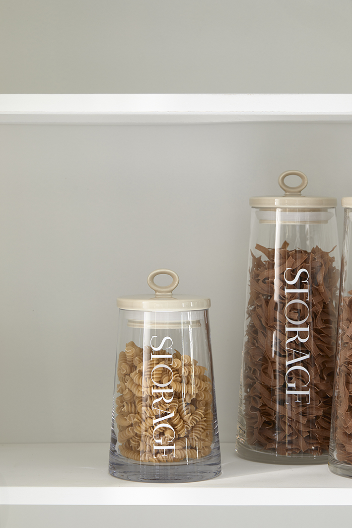Suchen Sie einen geschmackvollen und praktischen Vorratstopf? Dann liegen Sie mit den Küchenaccessoires aus der Serie RM Loft richtig. Dieser Vorratsbehälter in der Größe S ist aus Glas gefertigt. Der Keramikdeckel hat einen schönen, hellen Taupe-Farbton, der durch den auf das Glas gemalten Buchstaben O für Aufbewahrung wieder aufgegriffen wird.