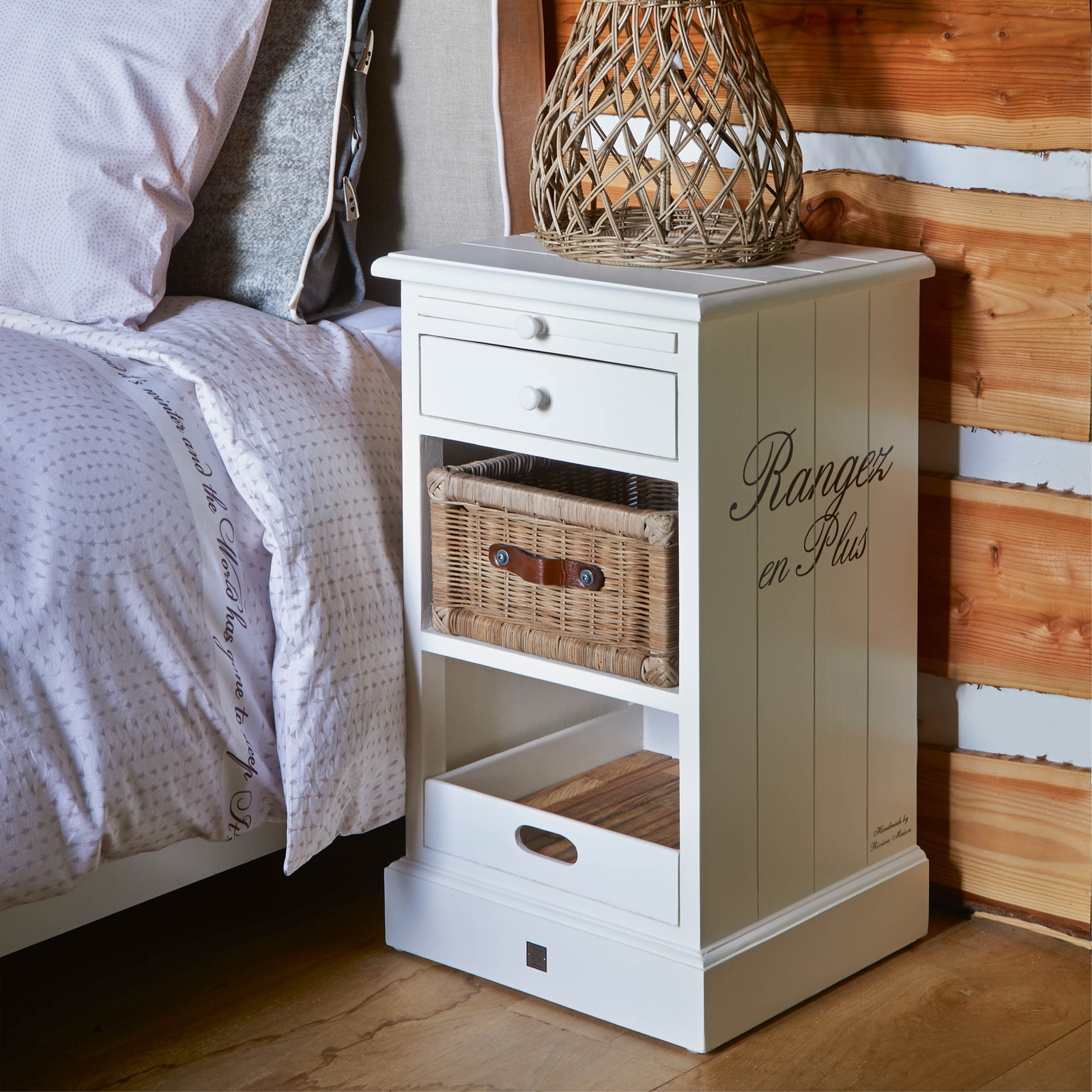 und die Kombination von Hartholz und Rattan aus. Dieses Nachtkästchen bietet