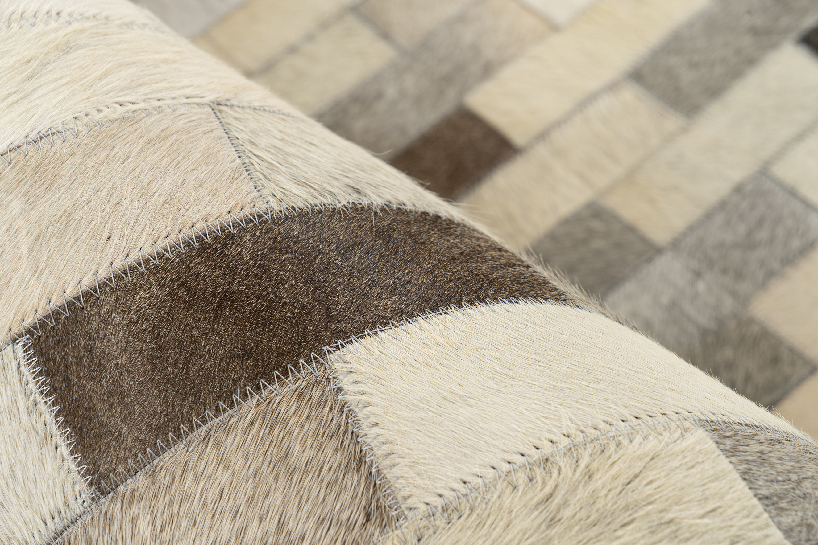 Der handgefertigte Teppich Ravi ist ein wahres Unikat. Kein Teppich ist wie der andere, da es sich bei den benutzten Materialien um rein natürliche Felle handelt. Der 8mm Kurzflorteppich ist zwar sehr kurz und deshalb einfach zu reinigen, aber dennoch hält er gut warm, da auf der Unterseite natürliche Wolle eingearbeitet wurde. Ein einzigartiges Stück für Ihr Heim! Spezifikationen: • Farbe: Creme / Schwarz • Florhöhe: ca. 8mm • Material: 100% Rindleder, Rücken 100% Wolle • Größe: 80cm x 150cm / 120cm x 170cm / 160cm x 230cm