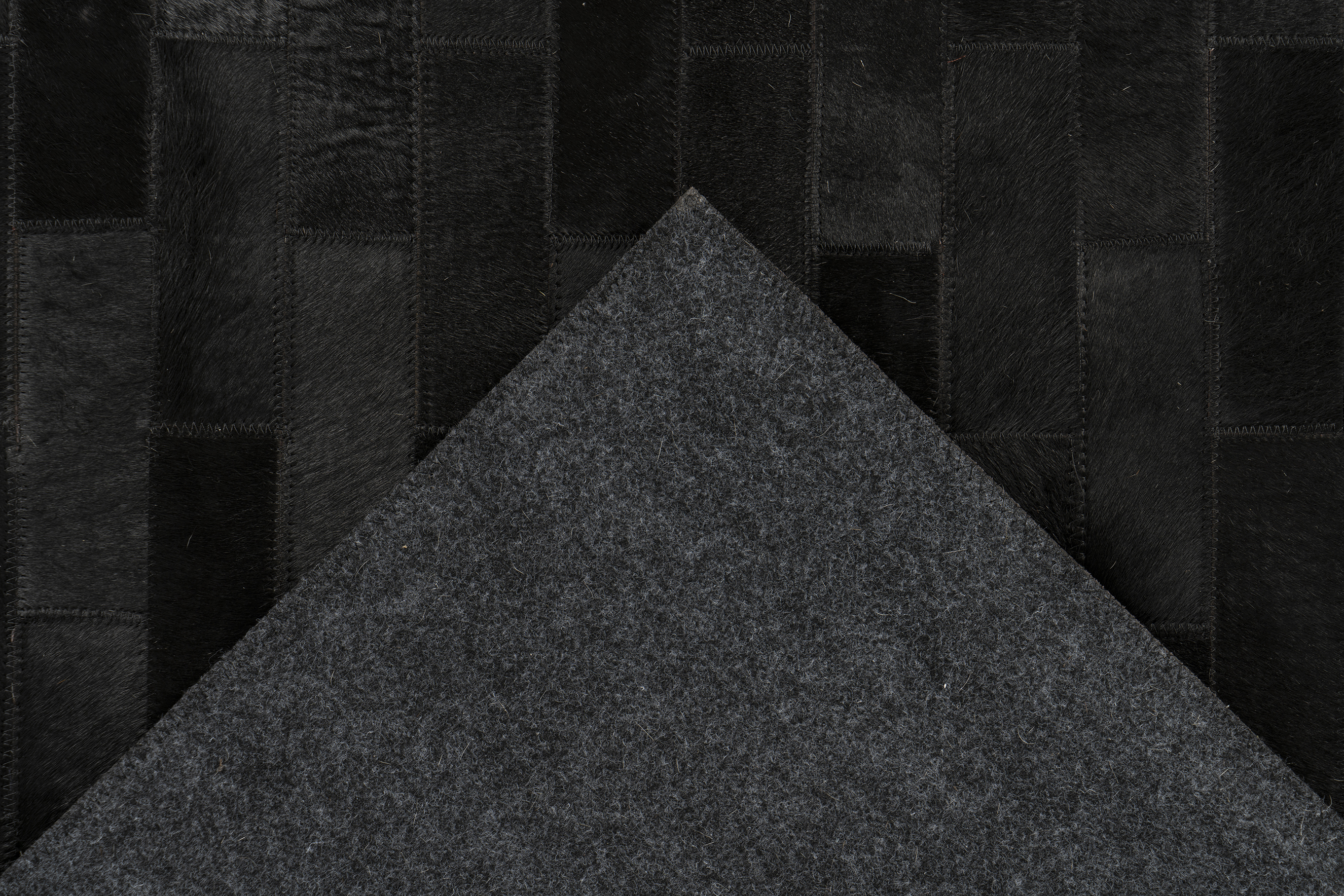 Der handgefertigte Teppich Ravi ist besonders hochwertig und ist ein wahres Unikat. Er besteht zu 100% aus Rindleder, wobei die Unterseite aus 100% Wolle besteht und den Teppich besonders warm und angenehm macht. Das hochwertig verarbeitete Unikat ist ein wahrer Blickfänger in jedem Raum! Spezifikationen: • erhältliche Farben: Schwarz / Grau • Florhöhe: ca. 8mm • Material: 100% Rindleder, Rücken 100% Wolle • Größe: 80cm x 150cm / 120cm x 170cm / 160cm x 230cm