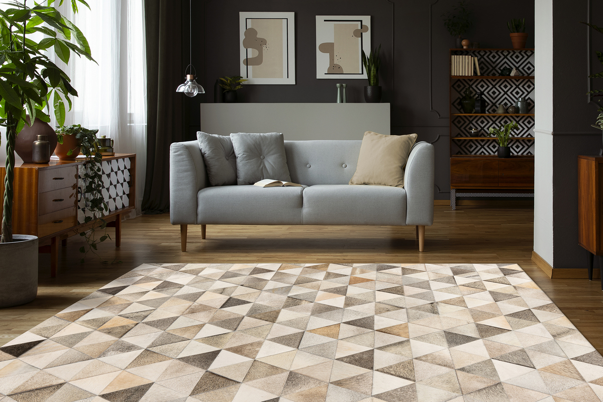 Der handgefertigte Teppich Ravi ist besonders hochwertig und ist ein wahres Unikat. Er besteht zu 100% aus Rindleder, wobei die Unterseite aus 100% Wolle besteht und den Teppich besonders warm und angenehm macht. Das hochwertig verarbeitete Unikat ist ein wahrer Blickfänger in jedem Raum! Spezifikationen: • erhältliche Farben: Schwarz / Grau • Florhöhe: ca. 8mm • Material: 100% Rindleder, Rücken 100% Wolle • Größe: 80cm x 150cm / 120cm x 170cm / 160cm x 230cm