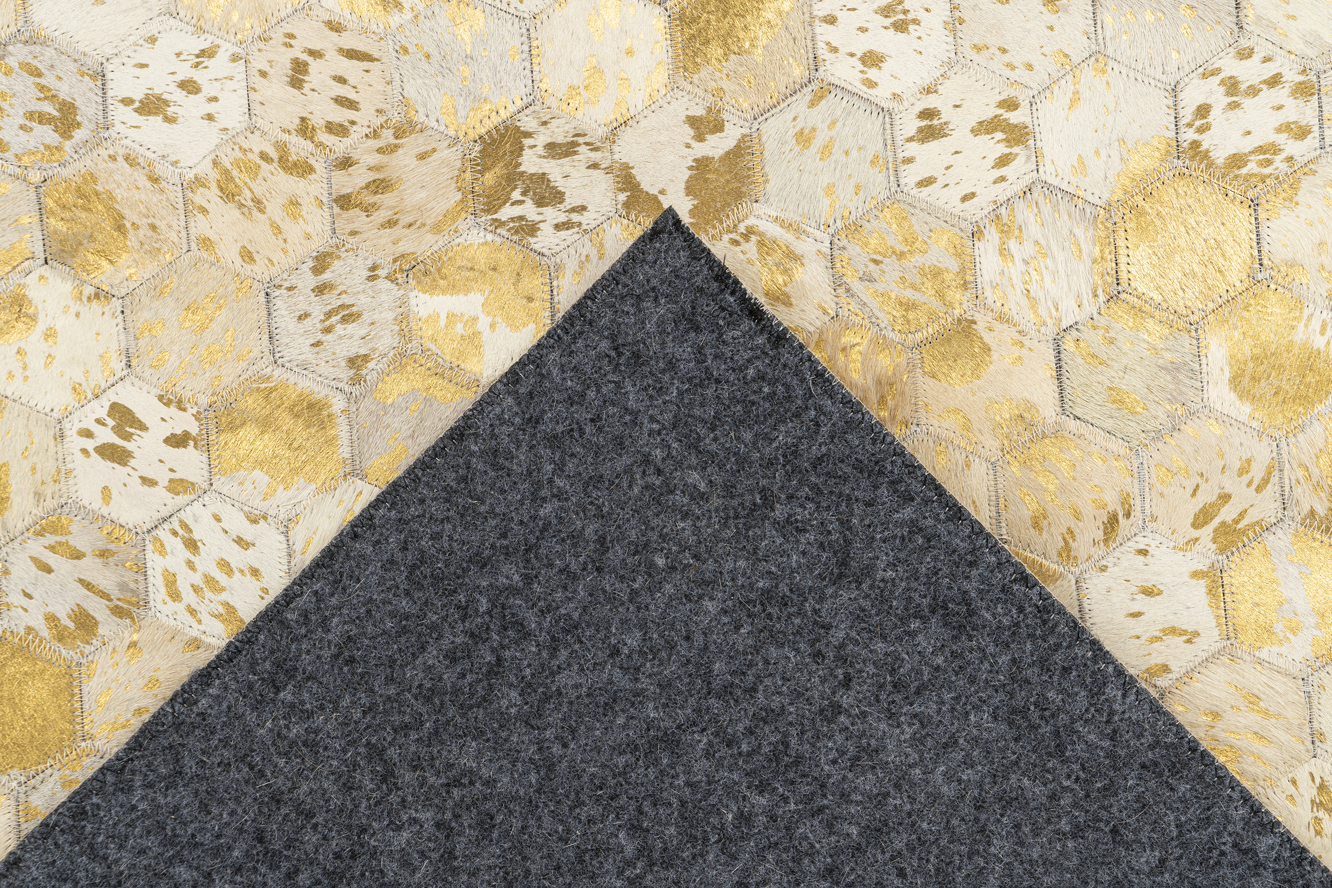 Der hochwertig verarbeitete Ravi Teppich ist in jeweils drei verschiedenen Farben und Größen erhältlich und fällt durch sein besonderes Design und die natürlichen Materialien auf. Die metallischen Effekte machen den ansprechenden Kurzflorteppich aus Rindleder zu einem Blickfang in jedem Zimmer. Spezifikationen: • erhältliche Farben: Silber-Grau / Gold-Grau • Florhöhe: ca. 8mm • Material: 100% Rindleder / Rücken 100% Wolle • Größe: 80cm x 150cm / 120cm x 170cm / 160cm x 230cm