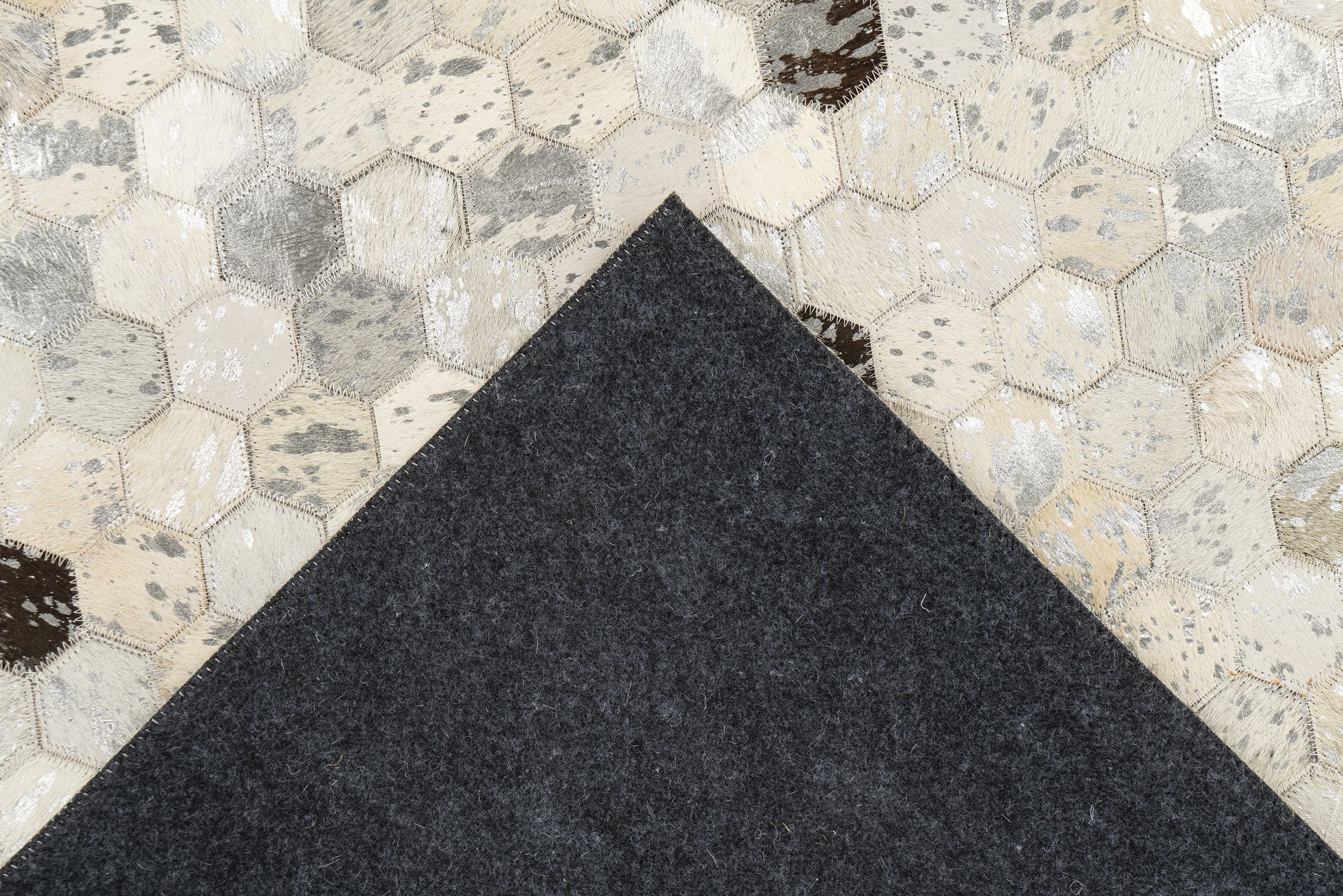 Der handgefertigte Teppich Ravi ist besonders hochwertig und ist ein wahres Unikat. Er besteht zu 100% aus Rindleder, wobei die Unterseite aus 100% Wolle besteht und den Teppich besonders warm und angenehm macht. Das hochwertig verarbeitete Unikat ist ein wahrer Blickfänger in jedem Raum! Spezifikationen: • erhältliche Farben: Schwarz / Grau • Florhöhe: ca. 8mm • Material: 100% Rindleder, Rücken 100% Wolle • Größe: 80cm x 150cm / 120cm x 170cm / 160cm x 230cm
