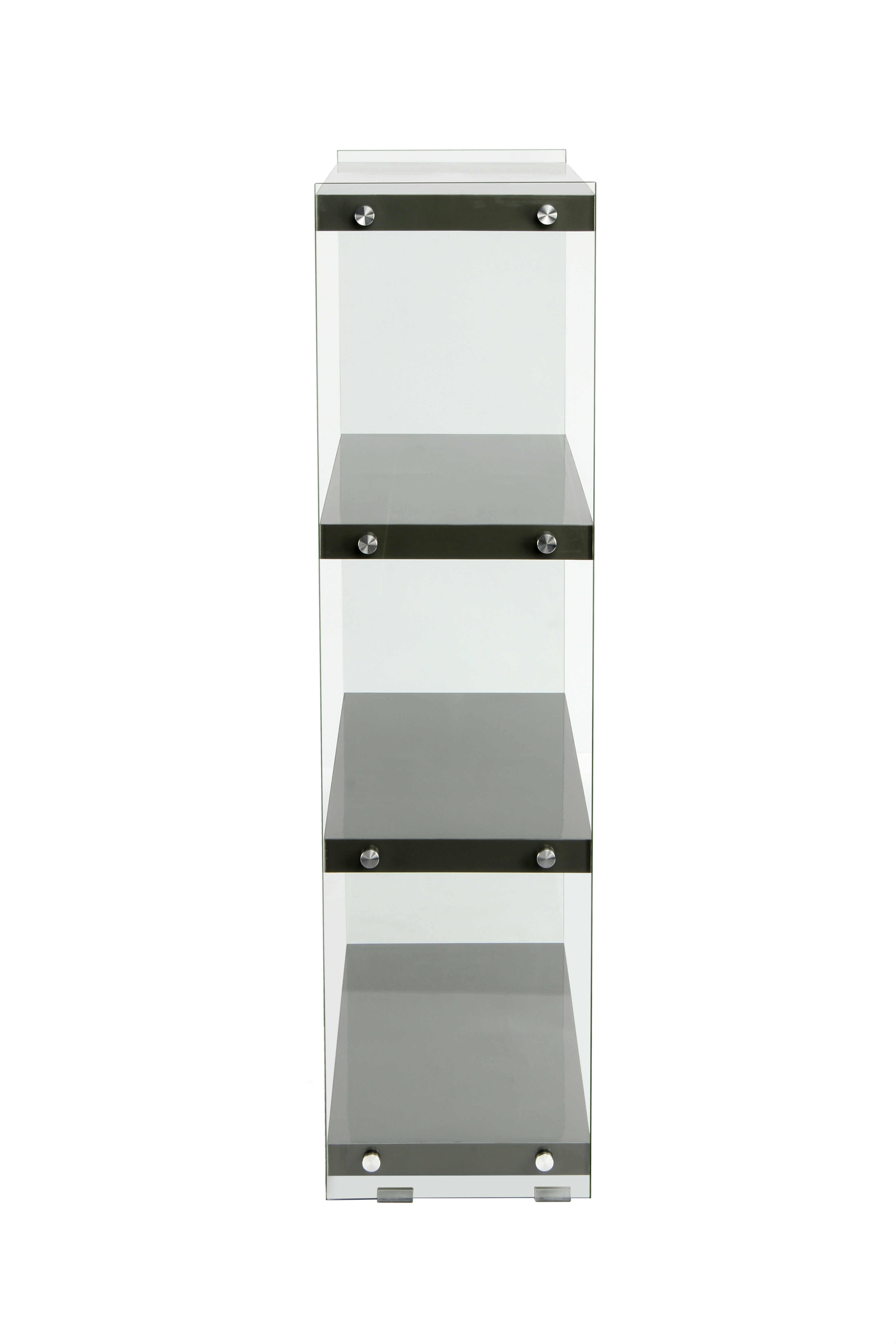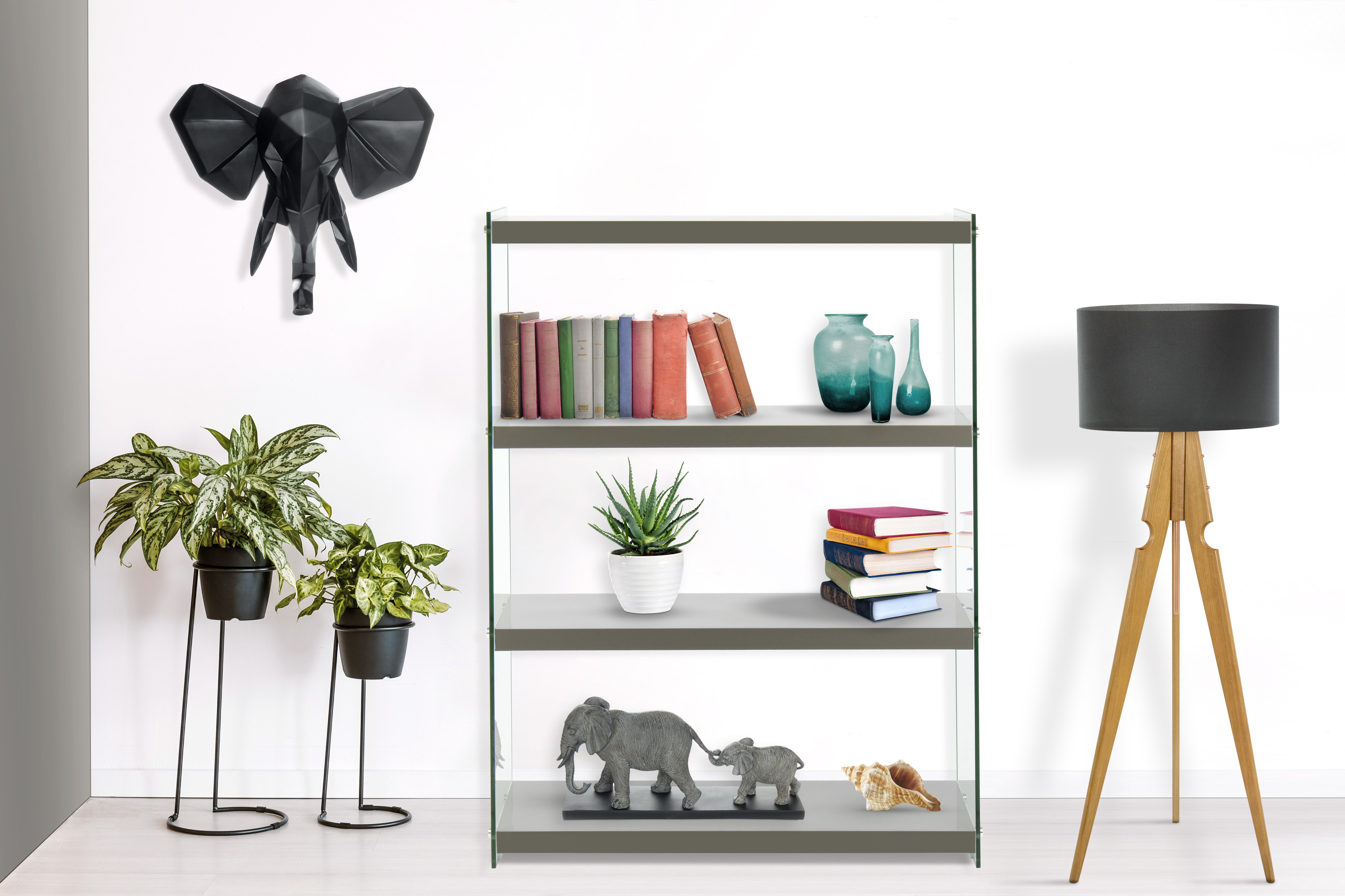 Das moderne Design dieses Regals zeichnet sich durch die transparenten Glas-Seitenwände und die unifarbenen Ablageflächen aus. Gleichzeitig ist das Design unaufdringlich und kann in verschiedene Einrichtungsstile integriert werden. Das Regal ist Bestandteil einer Möbelserie, sodass Sie durch die Kombination mit weiteren Möbelstücken ein einheitliches, harmonisches Gesamtambiente im Raum schaffen können. In dem Regal können ideal verschiedene Dinge platziert werden, wie beispielsweise Bücher, DVDs oder Dekoration. Egal ob als Wohnzimmerregal, Stauraum im Schlafzimmer oder als Ablage im Flur – das Regal ist vielseitig einsetzbar und ein praktisches und zugleich dekoratives Möbelstück. Durch die schmale Form kann es einfach an der Wand platziert werden und benötigt auch in kleinen und engen Räumen nur wenig Platz. Richten Sie sich mit Möbeln dieser Möbelserie in Ihrem Zuhause stilvoll ein und kombinieren Sie beispielsweise Regal und Beistelltisch miteinander. Das Regal kann in seiner tatsächlichen Farbgebung von den Bildern abweichen.