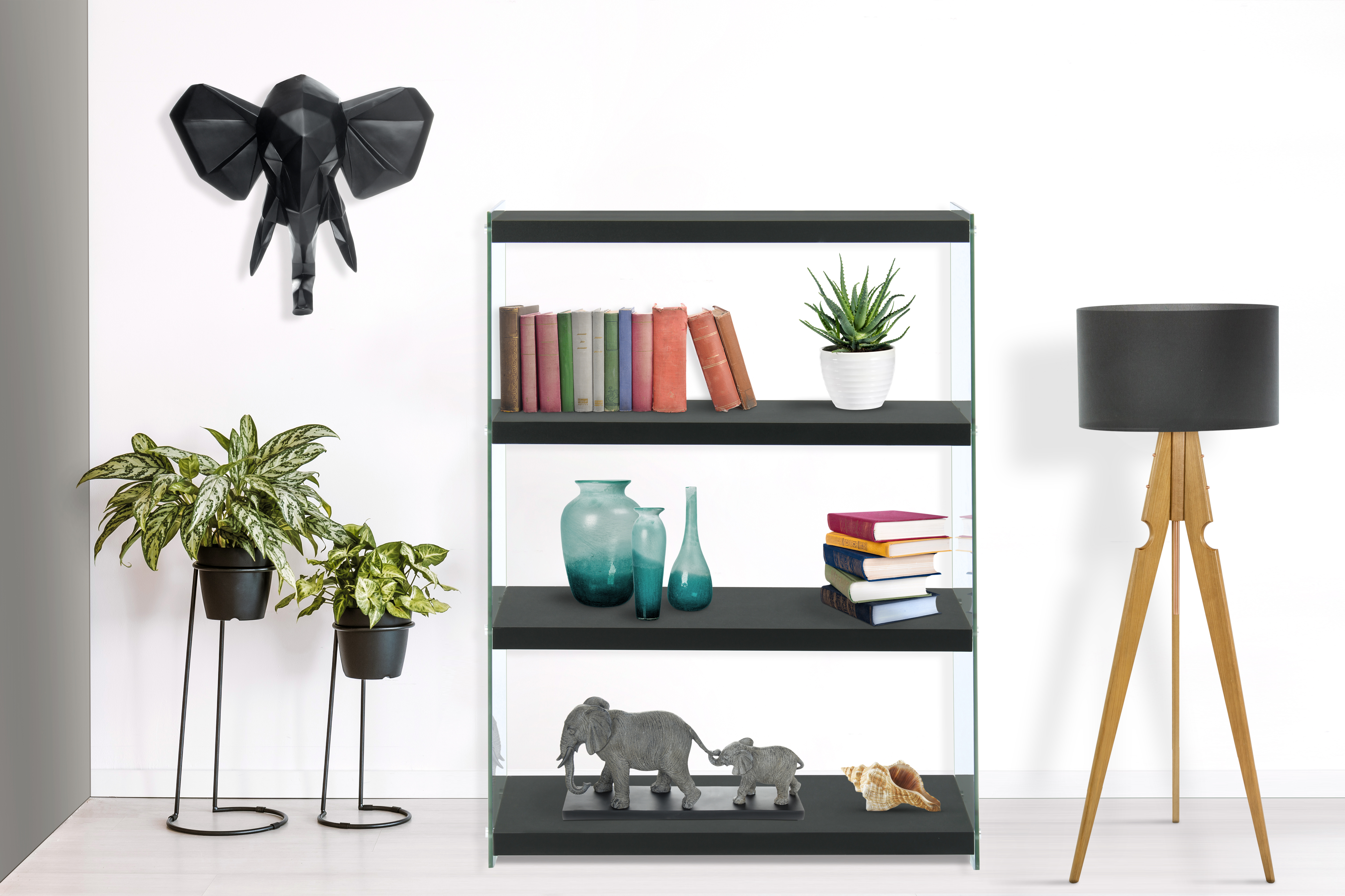 Das moderne Design dieses Regals zeichnet sich durch die transparenten Glas-Seitenwände und die unifarbenen Ablageflächen aus. Gleichzeitig ist das Design unaufdringlich und kann in verschiedene Einrichtungsstile integriert werden. Das Regal ist Bestandteil einer Möbelserie, sodass Sie durch die Kombination mit weiteren Möbelstücken ein einheitliches, harmonisches Gesamtambiente im Raum schaffen können. In dem Regal können ideal verschiedene Dinge platziert werden, wie beispielsweise Bücher, DVDs oder Dekoration. Egal ob als Wohnzimmerregal, Stauraum im Schlafzimmer oder als Ablage im Flur – das Regal ist vielseitig einsetzbar und ein praktisches und zugleich dekoratives Möbelstück. Durch die schmale Form kann es einfach an der Wand platziert werden und benötigt auch in kleinen und engen Räumen nur wenig Platz. Richten Sie sich mit Möbeln dieser Möbelserie in Ihrem Zuhause stilvoll ein und kombinieren Sie beispielsweise Regal und Beistelltisch miteinander. Das Regal kann in seiner tatsächlichen Farbgebung von den Bildern abweichen.