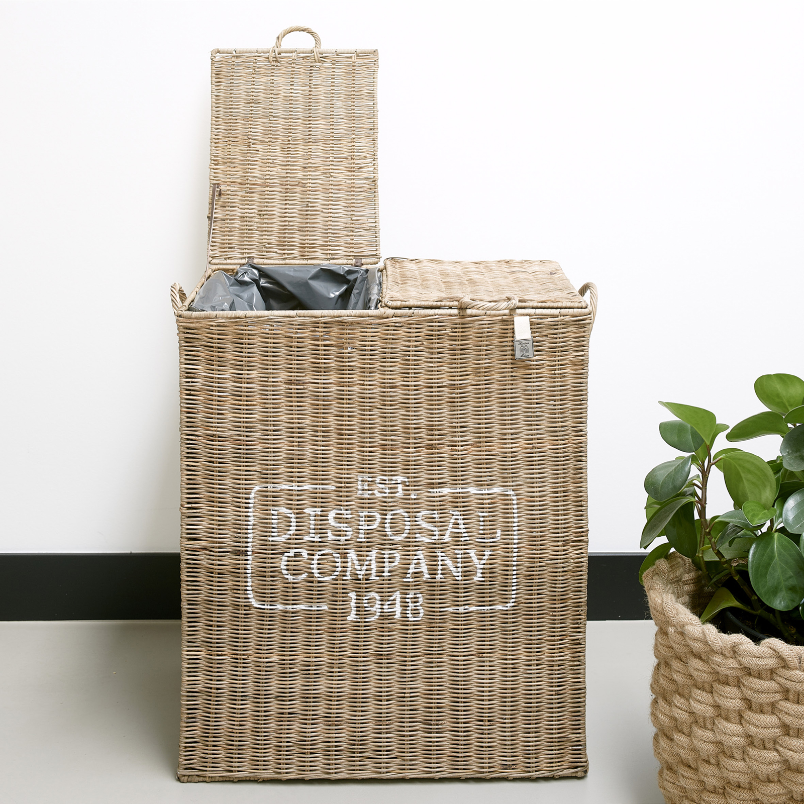 Bei der Gestaltung der Abfalltonne des RR Disposal Company Waste Bin wurde Rücksicht genommen auf die Umwelt. Der aus Rattan gefertigte Behälter bietet Platz für zwei Müllsäcke und erleichtert so die Mülltrennung.