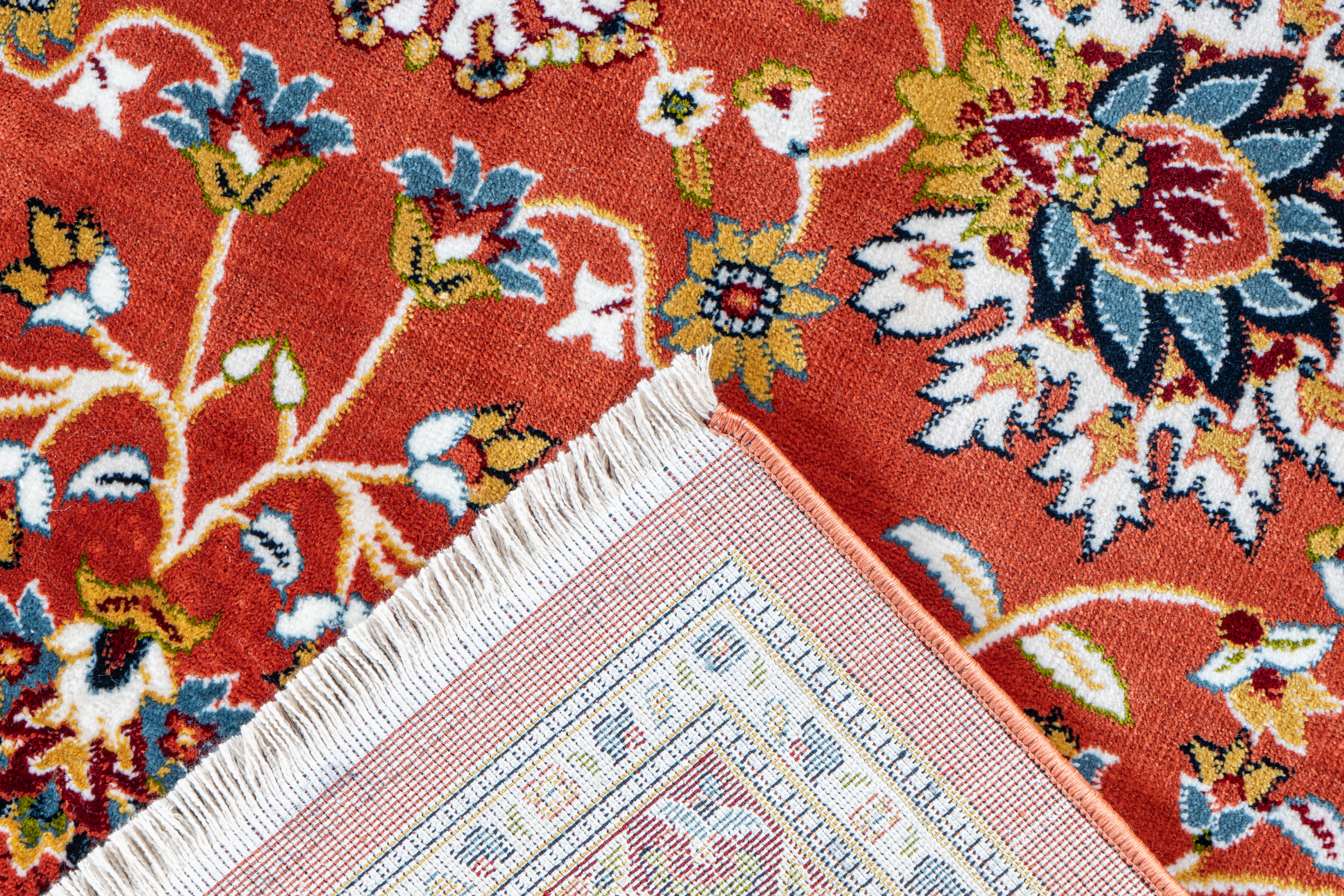 Dieser Teppich im Orient-Design bringt ein exotisches Flair in jeden Wohnraum. Harmonische Farben und Kontraste schaffen ein Wohngefühl der Extraklasse. Durch die intensive Farbgebung und das stilvolle, orientalische Design wird der Teppich in jedem Raum schnell zum Blickfang, bringt Ihre Einrichtung gut zur Geltung und sorgt für ein hohes Maß an Gemütlichkeit. Durch weiche Farnsen an den Teppichenenden und eine seitliche Kettelung wird ein Ausfransen der Faser verhindert. Das aufregende Muster können Sie jeden Tag neu entdecken und dabei das neu entstandene Wohnambiente in vollen Zügen genießen. Doch nicht nur in Ihren Wohnräumen ist der Teppich ein schöner Bodenbelag. Dank des strapazierfähigen, pflegeleichten Materials kann das Modell auch in Flur und Eingangsbereich genutzt werden, ohne an Attraktivität zu verlieren.