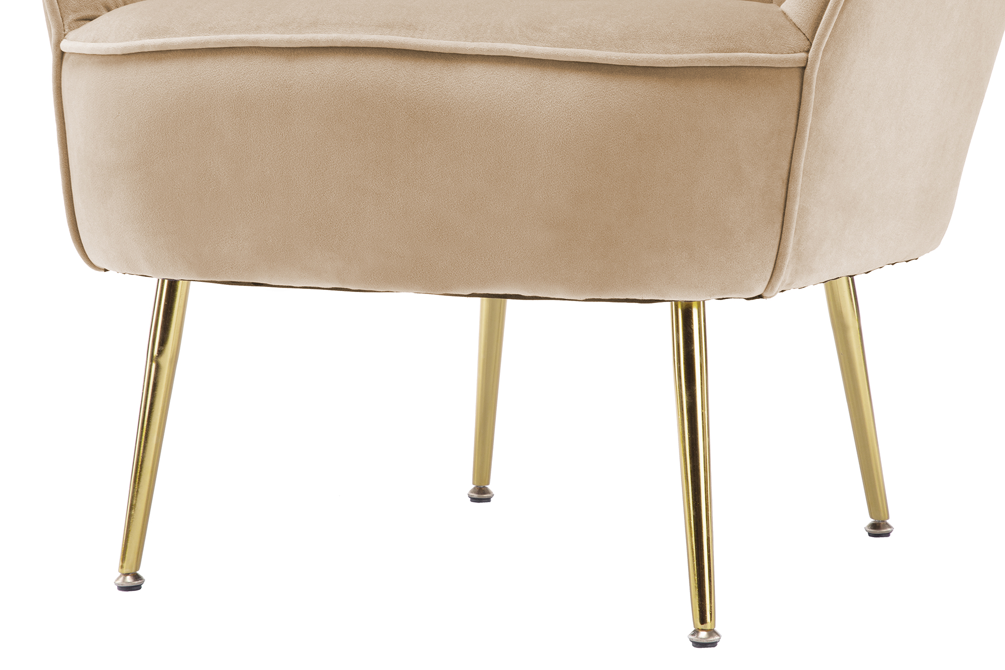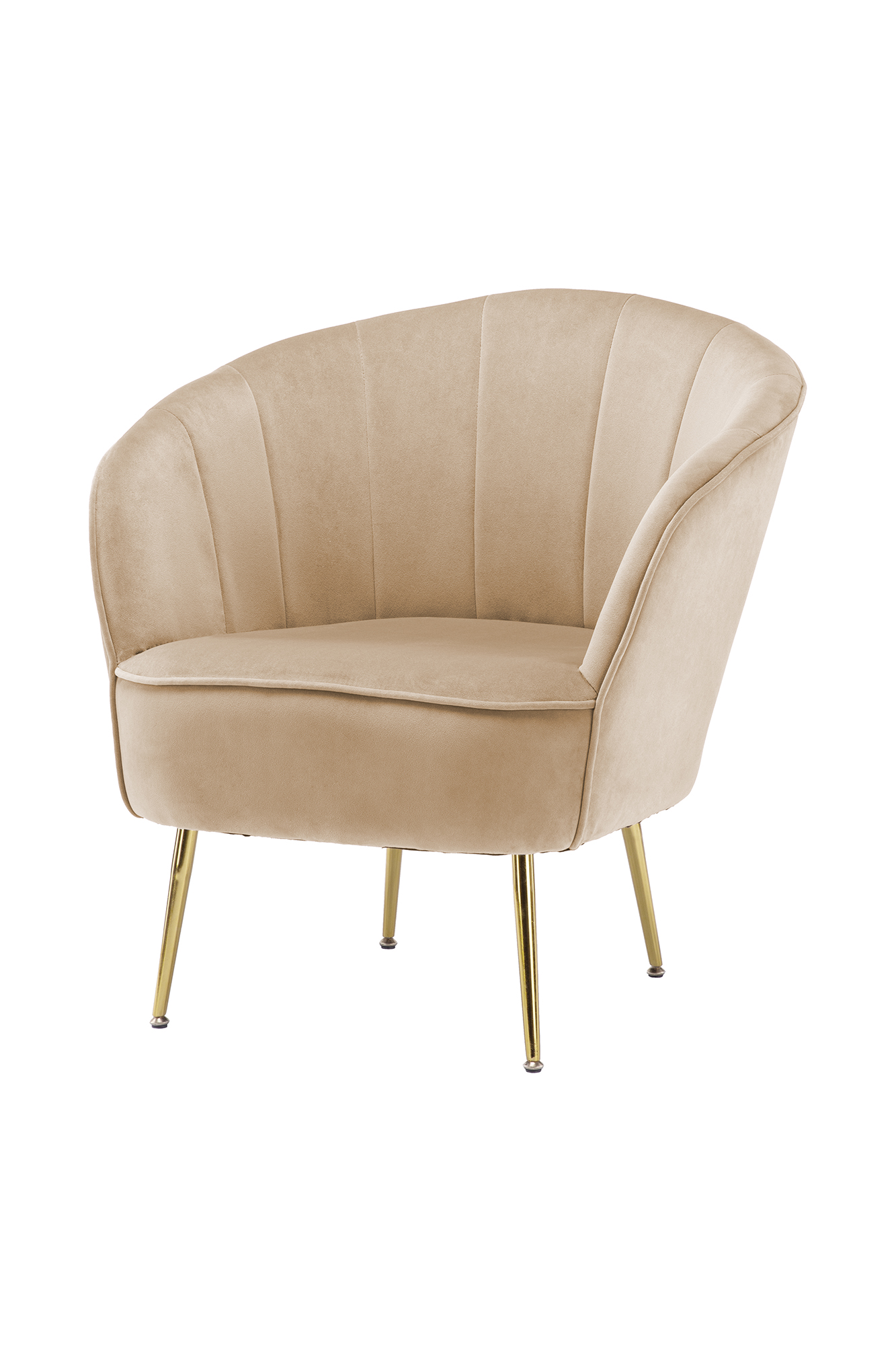 | Besonderheiten: | gemütlicher Cocktail-Sessel, gesteppte Rückenlehne, hochwertiger Samtbezug, goldfarbene Metallbeine |