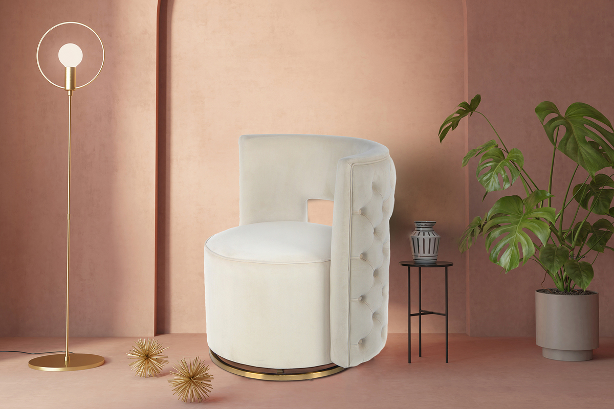 | Besonderheiten: | Elegantes Design, hochwertiger Samtbezug, gesteppter Rücken mit Glamour-Charakter, drehbar |