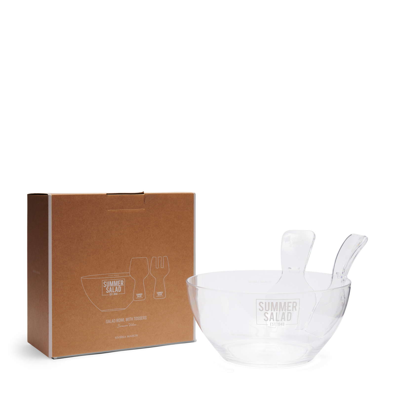 Die Summer Salad Bowl & Tossers von Riviera Maison wird in einer hübschen Geschenkbox geliefert. So können Sie das Salatset auch ganz einfach verschenken. Das Set besteht aus einer Salatschüssel mit der Aufschrift 'Summer Salad' und einem Salatbesteck, das Sie über den Rand hängen können. Das Set ist aus transparentem Acryl gefertigt, das nicht so leicht bricht.