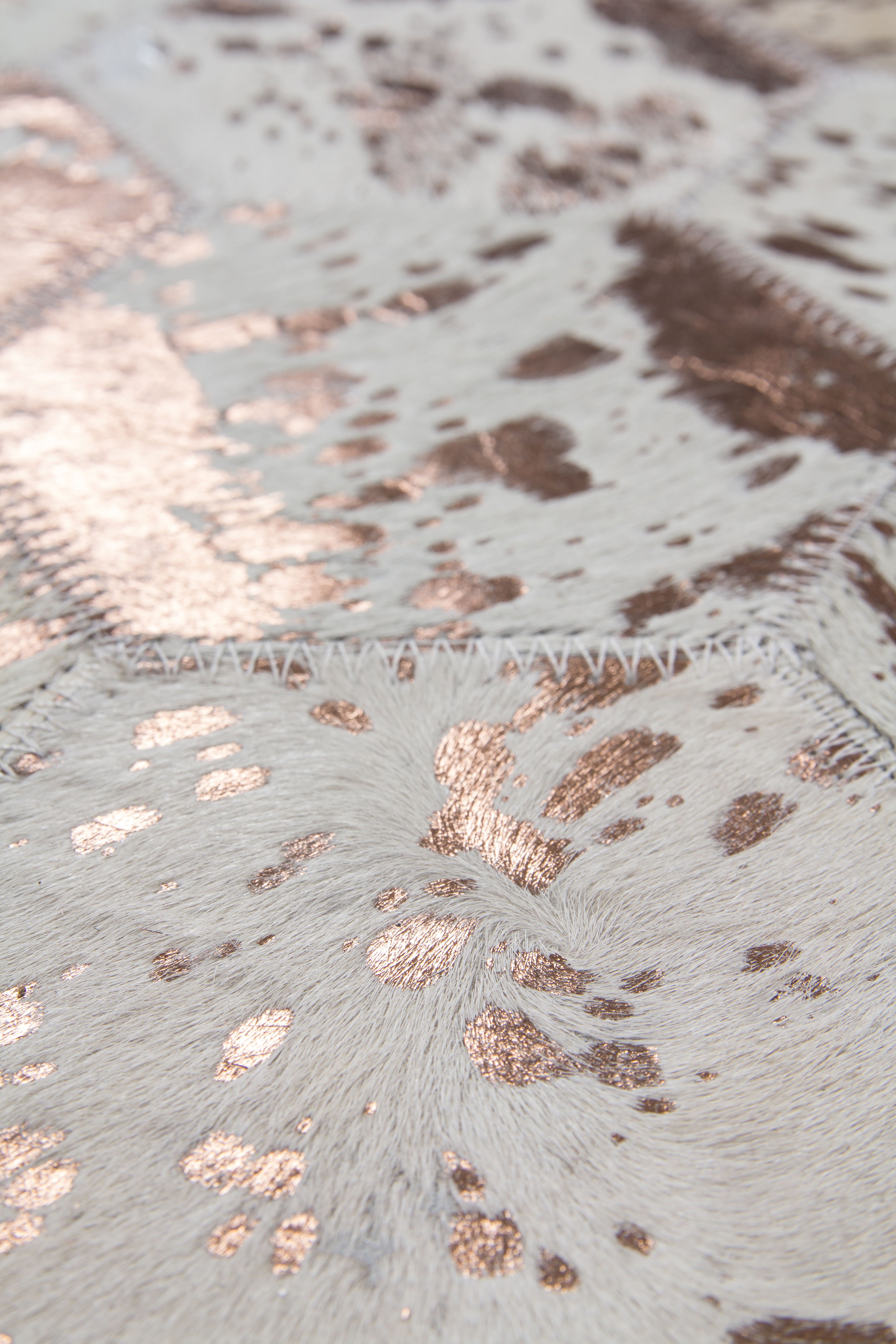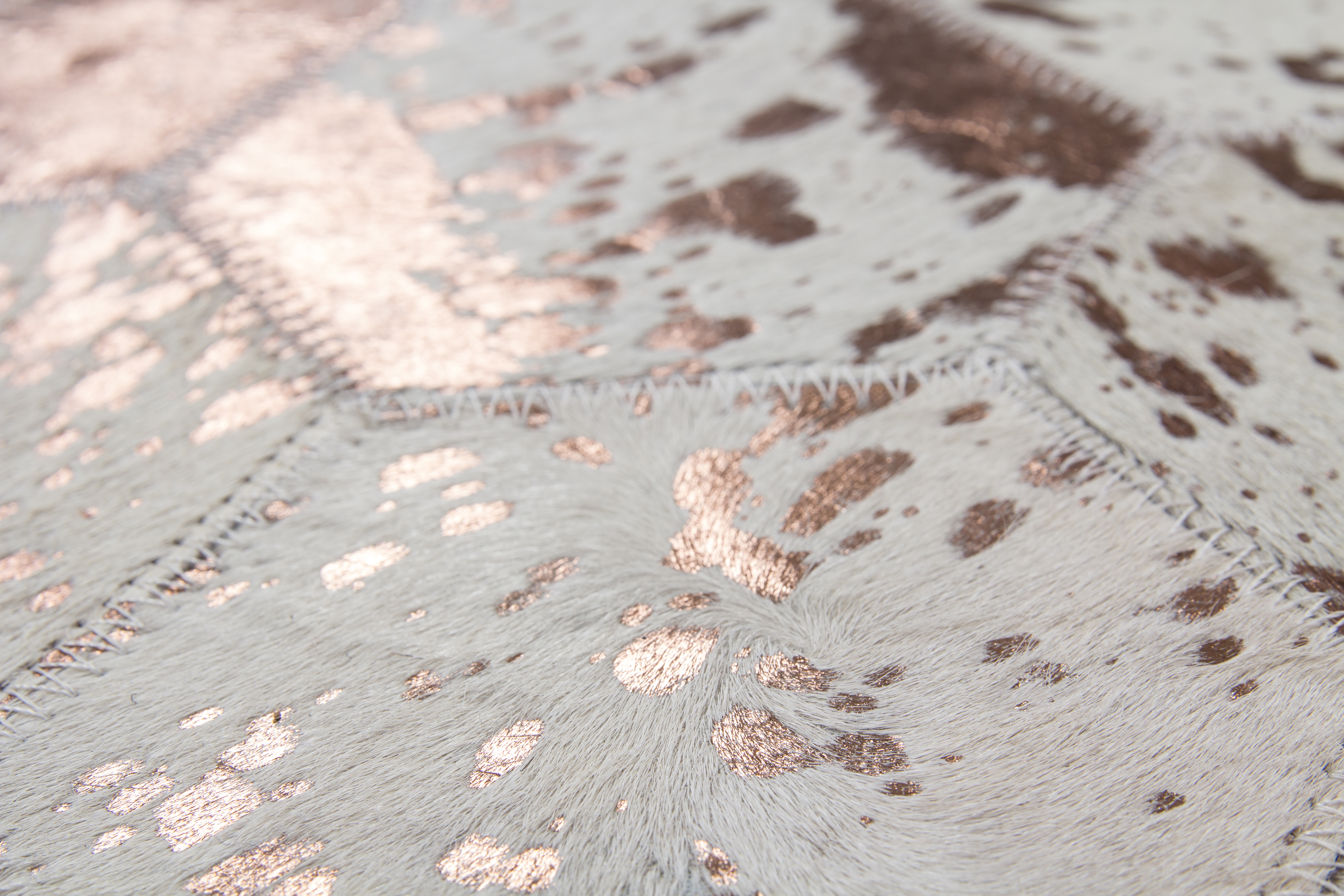 Der wunderschöne Lederteppich mit eingearbeiteten Applikationen aus metallischer Folie rundet jeden edlen Einrichtungsstil gekonnt ab. Der hochwertige Edel-Teppich aus 100 % Leder überträgt einen individuellen Touch auf seine Umgebung und erzeugt ein ganz besonderes Flair. Von Hand gefertigt ist jeder einzelne Lederteppich ein Unikat. Die Verwendung von edlen Naturmaterialien und die hochwertige Verarbeitung sorgen für ein dynamisches Aussehen und machen jeden Teppich einzigartig, denn bei Naturprodukten kann es in Form, Farbe und Muster zu Abweichungen von bis zu 30 % kommen. Das natürliche Fell kann nach einiger Zeit und bei hoher Beanspruchung gegebenenfalls an Haaren verlieren. Ebenso könnte sich die Metallicfolie unter Umständen ablösen. Dies ist dem Naturprodukt und der Beschaffenheit des Fells geschuldet und kein Produktionsfehler. Setzen Sie ein Statement mit diesem Lederteppich und machen Sie ihn zum Blickfang in Ihren vier Wänden. Er eignet sich für alle Räumlichkeiten - ob Wohnzimmer, Schlafzimmer, Diele oder Esszimmer. Das moderne wabenförmige Muster verleiht dem Produkt eine ganz besondere Note und kommt in Kombination mit verschiedenen Möbeln gut zur Geltung. Naturfaser-Teppiche fangen Fusselwolken ein und sind daher besonders gut für Allergiker geeignet, da sie gleich abgesaugt werden können. Der extra bequeme Lederteppich ist ein Alleskönner, der sowohl durch seine Optik als auch durch seine Haptik überzeugt. Das strapazierfähige Material macht die schwere Qualität des Teppichs aus, ist äußerst langlebig und pflegeleicht. Für einen spürbaren Wohlfühl-Effekt sorgt dabei die wärmeisolierende Eigenschaft des Leders. Verleihen Sie Ihren Räumen das gewisse Etwas und schaffen Sie Ihre eigene Relax-Insel in verschiedenen Nuancen. Selbst die kleinste Wohnung lässt sich mit diesem wundervollen Naturteppich persönlich einrichten, denn er ist in verschiedenen Größen erhältlich.