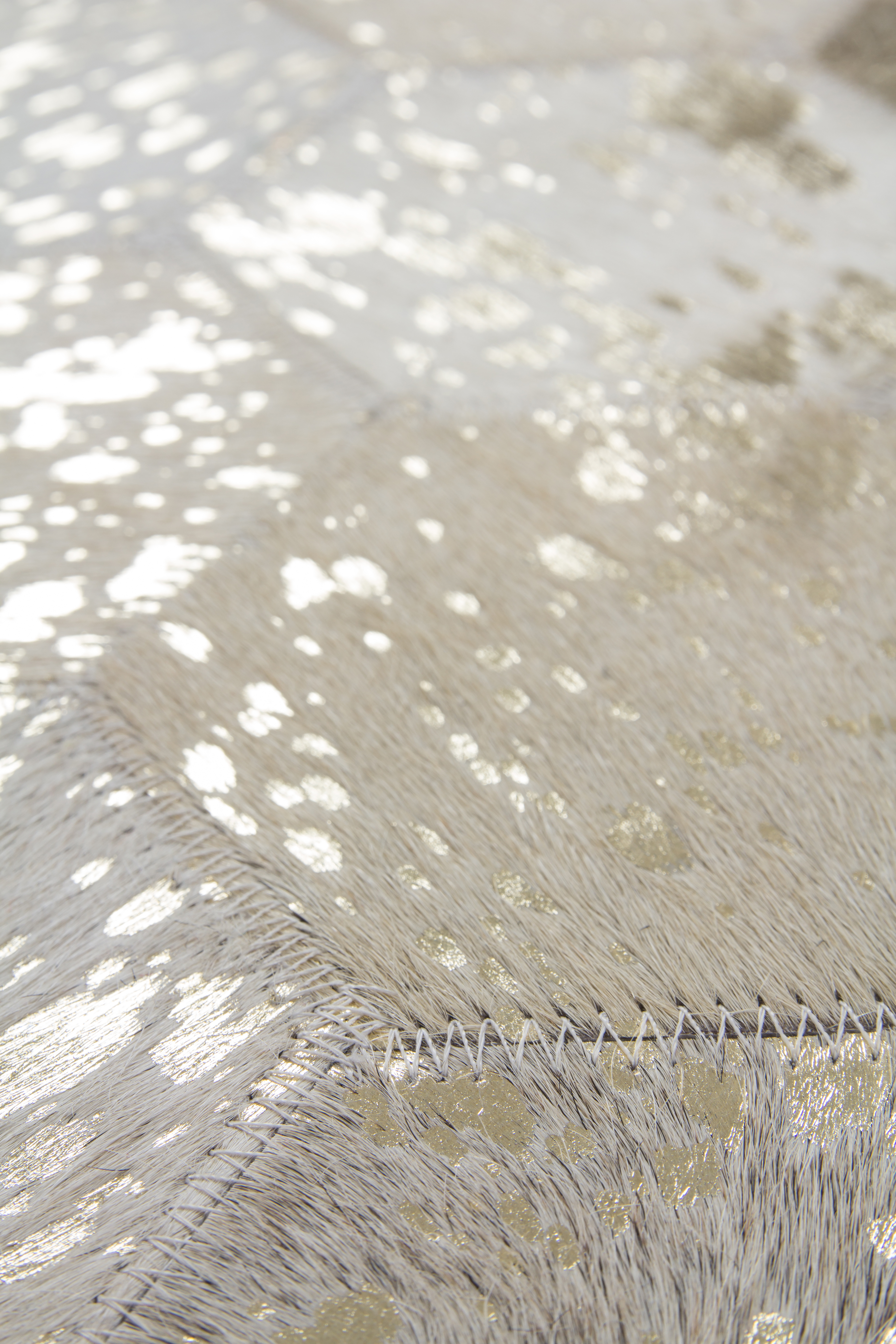 Der wunderschöne Lederteppich mit eingearbeiteten Applikationen aus metallischer Folie rundet jeden edlen Einrichtungsstil gekonnt ab. Der hochwertige Edel-Teppich aus 100 % Leder überträgt einen individuellen Touch auf seine Umgebung und erzeugt ein ganz besonderes Flair. Von Hand gefertigt ist jeder einzelne Lederteppich ein Unikat. Die Verwendung von edlen Naturmaterialien und die hochwertige Verarbeitung sorgen für ein dynamisches Aussehen und machen jeden Teppich einzigartig, denn bei Naturprodukten kann es in Form, Farbe und Muster zu Abweichungen von bis zu 30 % kommen. Das natürliche Fell kann nach einiger Zeit und bei hoher Beanspruchung gegebenenfalls an Haaren verlieren. Ebenso könnte sich die Metallicfolie unter Umständen ablösen. Dies ist dem Naturprodukt und der Beschaffenheit des Fells geschuldet und kein Produktionsfehler. Setzen Sie ein Statement mit diesem Lederteppich und machen Sie ihn zum Blickfang in Ihren vier Wänden. Er eignet sich für alle Räumlichkeiten - ob Wohnzimmer, Schlafzimmer, Diele oder Esszimmer. Das moderne wabenförmige Muster verleiht dem Produkt eine ganz besondere Note und kommt in Kombination mit verschiedenen Möbeln gut zur Geltung. Naturfaser-Teppiche fangen Fusselwolken ein und sind daher besonders gut für Allergiker geeignet, da sie gleich abgesaugt werden können. Der extra bequeme Lederteppich ist ein Alleskönner, der sowohl durch seine Optik als auch durch seine Haptik überzeugt. Das strapazierfähige Material macht die schwere Qualität des Teppichs aus, ist äußerst langlebig und pflegeleicht. Für einen spürbaren Wohlfühl-Effekt sorgt dabei die wärmeisolierende Eigenschaft des Leders. Verleihen Sie Ihren Räumen das gewisse Etwas und schaffen Sie Ihre eigene Relax-Insel in verschiedenen Nuancen. Selbst die kleinste Wohnung lässt sich mit diesem wundervollen Naturteppich persönlich einrichten, denn er ist in verschiedenen Größen erhältlich.