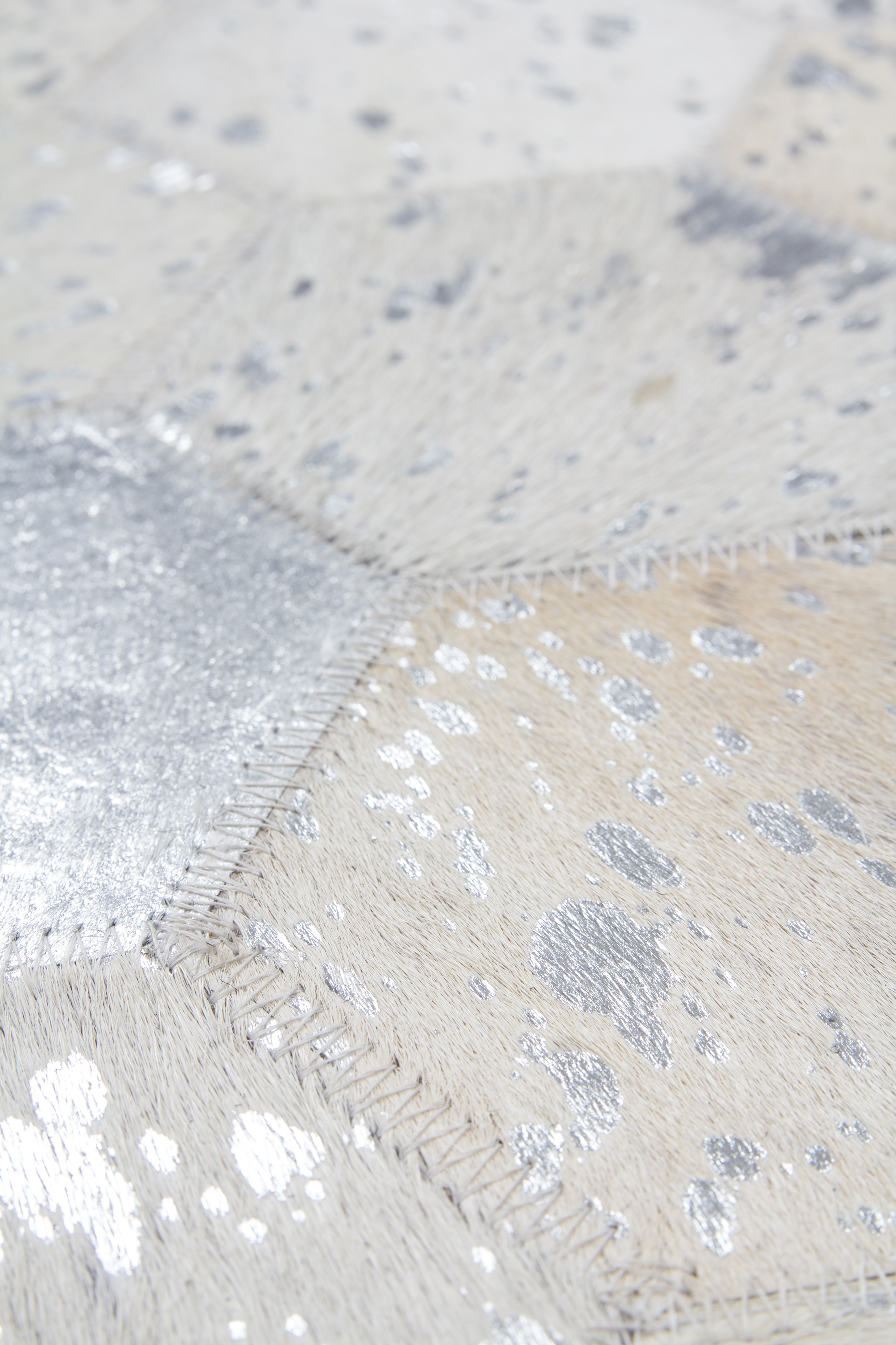 Der wunderschöne Lederteppich mit eingearbeiteten Applikationen aus metallischer Folie rundet jeden edlen Einrichtungsstil gekonnt ab. Der hochwertige Edel-Teppich aus 100 % Leder überträgt einen individuellen Touch auf seine Umgebung und erzeugt ein ganz besonderes Flair. Von Hand gefertigt ist jeder einzelne Lederteppich ein Unikat. Die Verwendung von edlen Naturmaterialien und die hochwertige Verarbeitung sorgen für ein dynamisches Aussehen und machen jeden Teppich einzigartig, denn bei Naturprodukten kann es in Form, Farbe und Muster zu Abweichungen von bis zu 30 % kommen. Das natürliche Fell kann nach einiger Zeit und bei hoher Beanspruchung gegebenenfalls an Haaren verlieren. Ebenso könnte sich die Metallicfolie unter Umständen ablösen. Dies ist dem Naturprodukt und der Beschaffenheit des Fells geschuldet und kein Produktionsfehler. Setzen Sie ein Statement mit diesem Lederteppich und machen Sie ihn zum Blickfang in Ihren vier Wänden. Er eignet sich für alle Räumlichkeiten - ob Wohnzimmer, Schlafzimmer, Diele oder Esszimmer. Das moderne wabenförmige Muster verleiht dem Produkt eine ganz besondere Note und kommt in Kombination mit verschiedenen Möbeln gut zur Geltung. Naturfaser-Teppiche fangen Fusselwolken ein und sind daher besonders gut für Allergiker geeignet, da sie gleich abgesaugt werden können. Der extra bequeme Lederteppich ist ein Alleskönner, der sowohl durch seine Optik als auch durch seine Haptik überzeugt. Das strapazierfähige Material macht die schwere Qualität des Teppichs aus, ist äußerst langlebig und pflegeleicht. Für einen spürbaren Wohlfühl-Effekt sorgt dabei die wärmeisolierende Eigenschaft des Leders. Verleihen Sie Ihren Räumen das gewisse Etwas und schaffen Sie Ihre eigene Relax-Insel in verschiedenen Nuancen. Selbst die kleinste Wohnung lässt sich mit diesem wundervollen Naturteppich persönlich einrichten, denn er ist in verschiedenen Größen erhältlich.