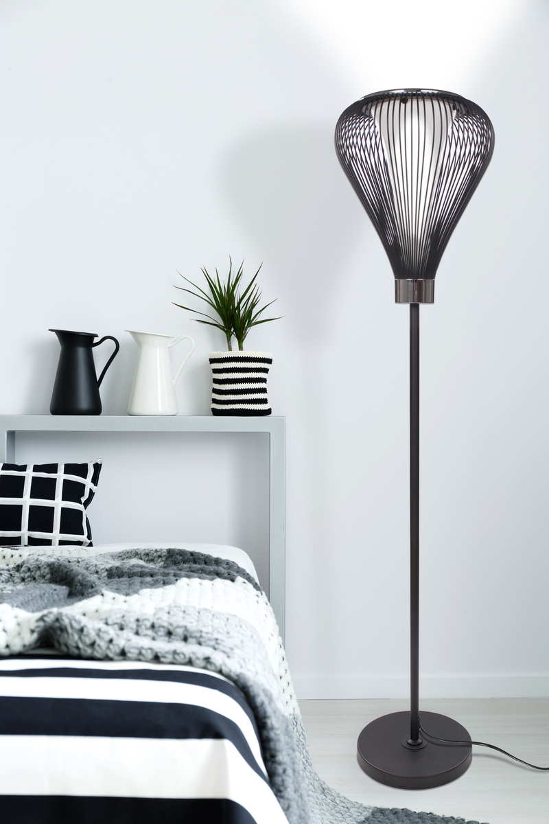 Für eine Umgebung in einem völlig neuen Lichtkonzept sorgt die auffällige Design-Stehlampe, die aus Metallstreben geformt wurde. Sie taucht jeden Raum in ein stimmungsvolles Licht. Sie wollen Ihrem Wohnraum einen außergewöhnlichen Touch geben? Dann ist diese Stehlampe mit Metallstreben genau das Richtige für Sie. Die schöne Design-Lampe ist zudem mit einem Glas ausgestattet. Sie kann wunderbar mit schlichten und modernen Möbeln kombiniert werden und macht dabei immer eine gute Figur. Optisch schön und hochwertig verarbeitet präsentiert die schöne Leuchte sich stolz mit einem unverwechselbaren Design und in einem warmen Licht.