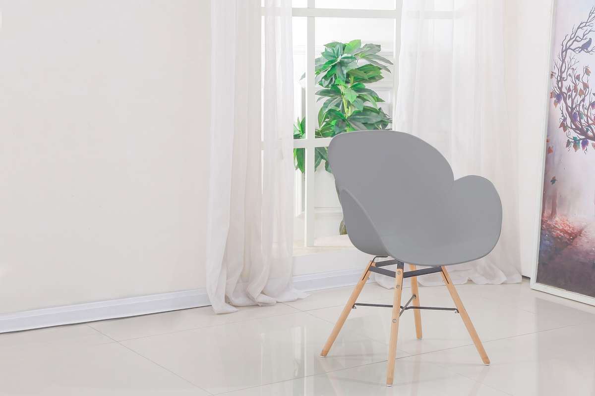 Dieses Stuhl-Set bringt frischen Wind in Ihr Zuhause. Die Sitzschale in unifarben schlichtem Design ist kombiniert mit einem modernen Gestell aus Holz und Metall und dadurch ein ganz besonderer Blickfang. Die seitlich abgespreizten Beine aus Holz sind durch stilvolle Metallstreben verbunden und sorgen für einen stabilen Stand. Die Sitzschale besteht aus einem Stück und ist durch das robuste Material äußerst pflegeleicht. Durch die einfach zu reinigende Oberfläche sind die Stühle daher ideal für die Küche oder das Esszimmer geeignet.