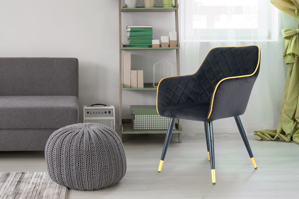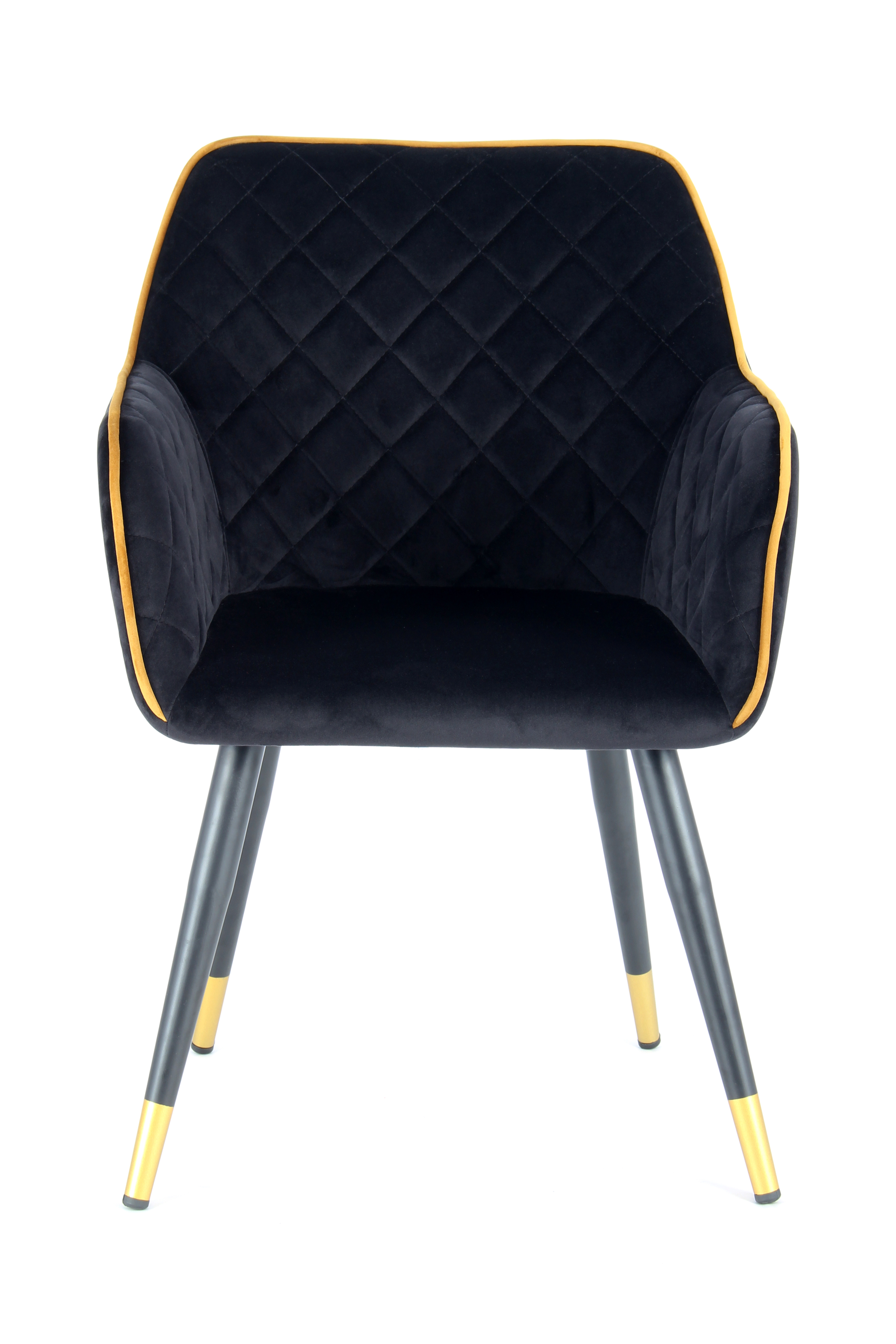 Dieser Stuhl bringt ein edles Ambiente mit sich. Bereits optisch vermittelt der Design-Stuhl Luxus und Glamour. Der samtige Velvet-Bezug sorgt durch das unifarbene Design mit farblich abgesetztem Rand für eine ruhige Atmosphäre und gleichzeitig für ein elegantes Erscheinungsbild. Stilvolle Ziernähte verleihen der Rückenlehne und den Armlehnen ein königliches Design, das perfekt mit der samtigen Haptik harmoniert. Stabile Stuhlbeine aus Metall mit glanzvollen Füßen vervollständigen das Gesamtbild dieses Möbelstücks. Der Stuhl sieht jedoch nicht nur ansprechend aus, sondern ist auch sehr funktional. Die weich gepolsterte Sitzfläche und die Polsterung in Rückenlehne und Armlehnen sorgt für ein angenehmes Sitzgefühl, bei dem Sie sich entspannen und wohlfühlen können. Nehmen Sie sich ein gutes Buch, stützen Sie Ihre Arme auf den Armlehnen ab und genießen Sie den Sitzkomfort beim Schmökern. Eine Stehlampe kann Ihnen das passende Licht spenden. Aber auch eine Tischlampe, platziert auf einem Beistelltisch, schafft eine angenehme Beleuchtung und bietet durch den Tisch auch gleichzeitig Ablagefläche für Ihr Buch oder ein leckeres Heißgetränk. Schaffen Sie sich Ihre persönliche Wohlfühlzone in Wohnzimmer, Schlafzimmer oder Esszimmer und genießen Sie das gemütliche Ambiente. Neben den heimischen Wohnräumen ist der Stuhl auch für Geschäftsräume und Wartebereiche gut geeignet und schafft bei Gästen und Kunden einen positiven ersten Eindruck. Der Stuhl kann in seiner tatsächlichen Farbgebung von den Bildern abweichen.