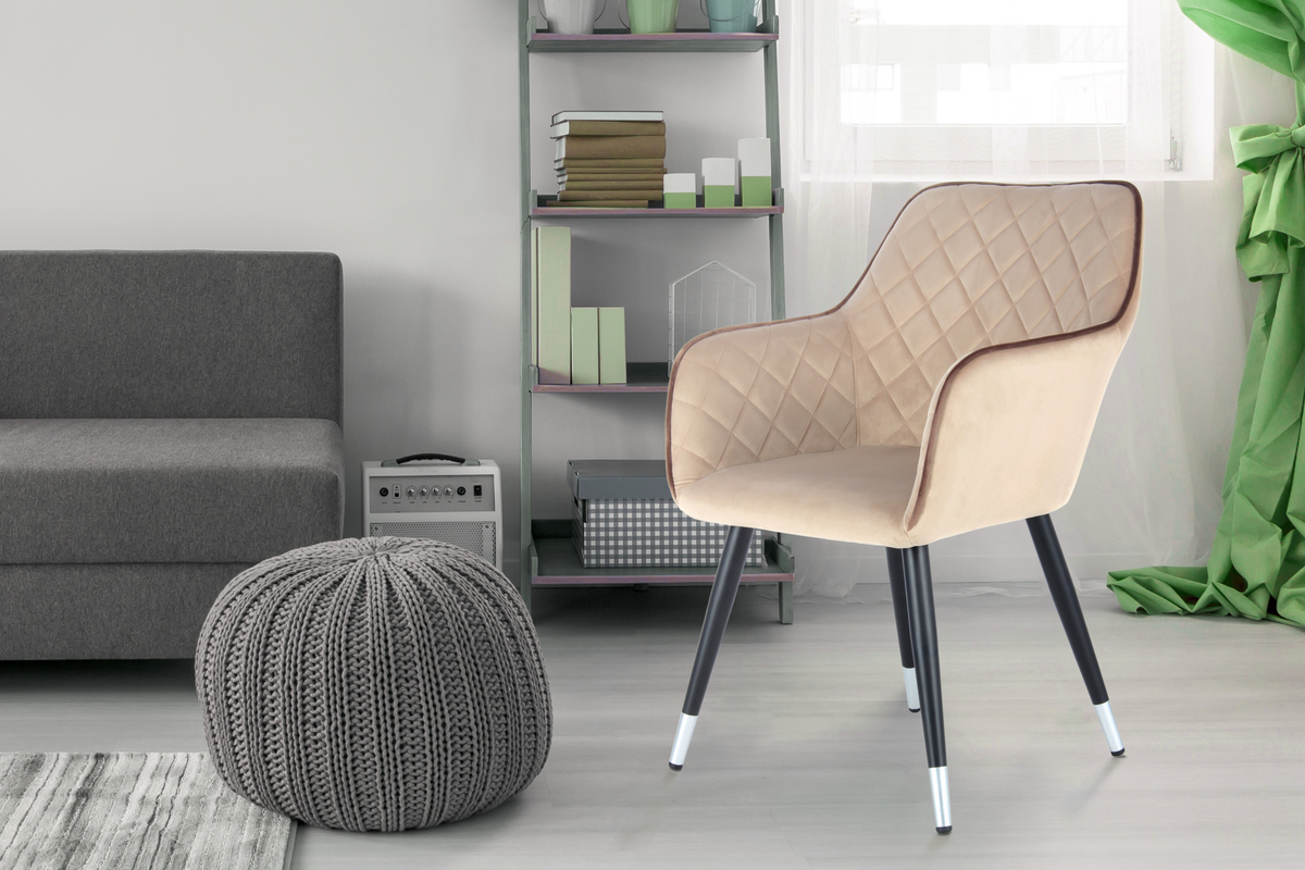 Dieser Stuhl bringt ein edles Ambiente mit sich. Bereits optisch vermittelt der Design-Stuhl Luxus und Glamour. Der samtige Velvet-Bezug sorgt durch das unifarbene Design mit farblich abgesetztem Rand für eine ruhige Atmosphäre und gleichzeitig für ein elegantes Erscheinungsbild. Stilvolle Ziernähte verleihen der Rückenlehne und den Armlehnen ein königliches Design, das perfekt mit der samtigen Haptik harmoniert. Stabile Stuhlbeine aus Metall mit glanzvollen Füßen vervollständigen das Gesamtbild dieses Möbelstücks. Der Stuhl sieht jedoch nicht nur ansprechend aus, sondern ist auch sehr funktional. Die weich gepolsterte Sitzfläche und die Polsterung in Rückenlehne und Armlehnen sorgt für ein angenehmes Sitzgefühl, bei dem Sie sich entspannen und wohlfühlen können. Nehmen Sie sich ein gutes Buch, stützen Sie Ihre Arme auf den Armlehnen ab und genießen Sie den Sitzkomfort beim Schmökern. Eine Stehlampe kann Ihnen das passende Licht spenden. Aber auch eine Tischlampe, platziert auf einem Beistelltisch, schafft eine angenehme Beleuchtung und bietet durch den Tisch auch gleichzeitig Ablagefläche für Ihr Buch oder ein leckeres Heißgetränk. Schaffen Sie sich Ihre persönliche Wohlfühlzone in Wohnzimmer, Schlafzimmer oder Esszimmer und genießen Sie das gemütliche Ambiente. Neben den heimischen Wohnräumen ist der Stuhl auch für Geschäftsräume und Wartebereiche gut geeignet und schafft bei Gästen und Kunden einen positiven ersten Eindruck. Der Stuhl kann in seiner tatsächlichen Farbgebung von den Bildern abweichen. Durch unterschiedlichen Lichteinfall und verschiedene Streichrichtungen des Stoffbezuges können unterschiedliche Farbnuancen entstehen.