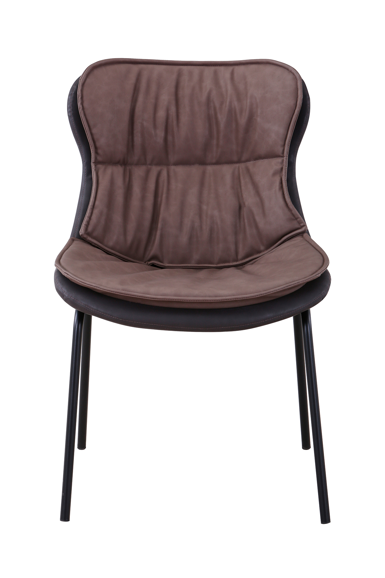 Stylischer Design-Stuhl in Lederoptik Eine bequeme Sitzfläche in Lederoptik auf einer stylischen Sitzschale aus Eisen: Ein toller Designstuhl für Ihr Zuhause! Die schöne Farb-Kombination wirkt elegant und einladend. Die schönen Ziernähte sorgen für eine moderne Optik. Gleichzeitig ist dieser Stuhl aber auch äußerst funktional: Die Oberfläche ist sehr pflegeleicht und im Alltag damit praktisch. Das wichtigste: Man sitzt sehr bequem! Sie und Ihre Gäste werden sich auf diesem hübschen Stuhl also definitiv wohlfühlen.