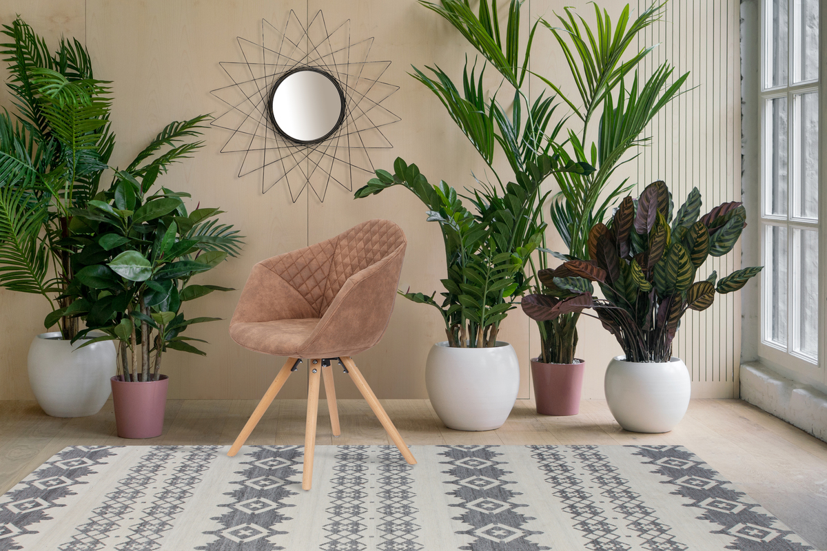 Die Farbe des Stoffbezugs harmoniert mit den Holz-Stuhlbeinen und lässt sich vor allem in moderne Einrichtungen gut integrieren. Die leicht abgespreizten Stuhlbeine geben dem Stuhl die notwendige Stabilität und festen Stand.