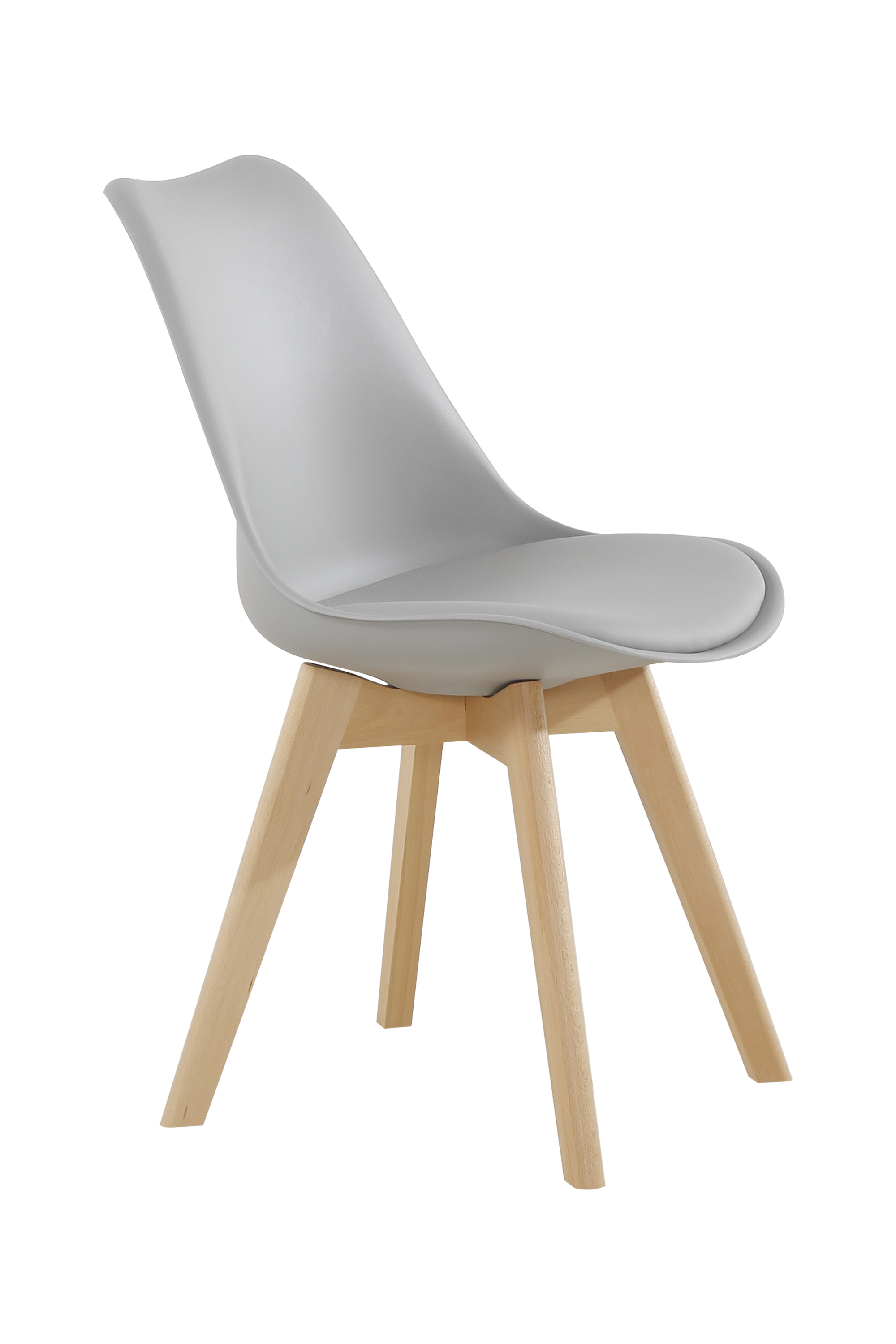 Für einen besonderen Sitzkomfort sorgt bei diesen bequemen Stühlen die gepolsterte Sitzfläche. Die aus einem Stück gegossene Sitzschale aus Kunststoff ist mit einem weichen Sitzkissen versehen, sodass auch längeres Sitzen nicht unbequem wird. Das leicht zu reinigende Material macht den Stuhl zu einer idealen Sitzgelegenheit für die Nutzung am Esstisch. Die Holzbeine des Stuhls passen ideal zu massiven Holztischen und sorgen für ein modernes Ambiente. Dabei integriert sich das stilvolle Design in jeden Einrichtungsstil, ohne die weiteren Möbel und Einrichtungsgegenstände zu dominieren.