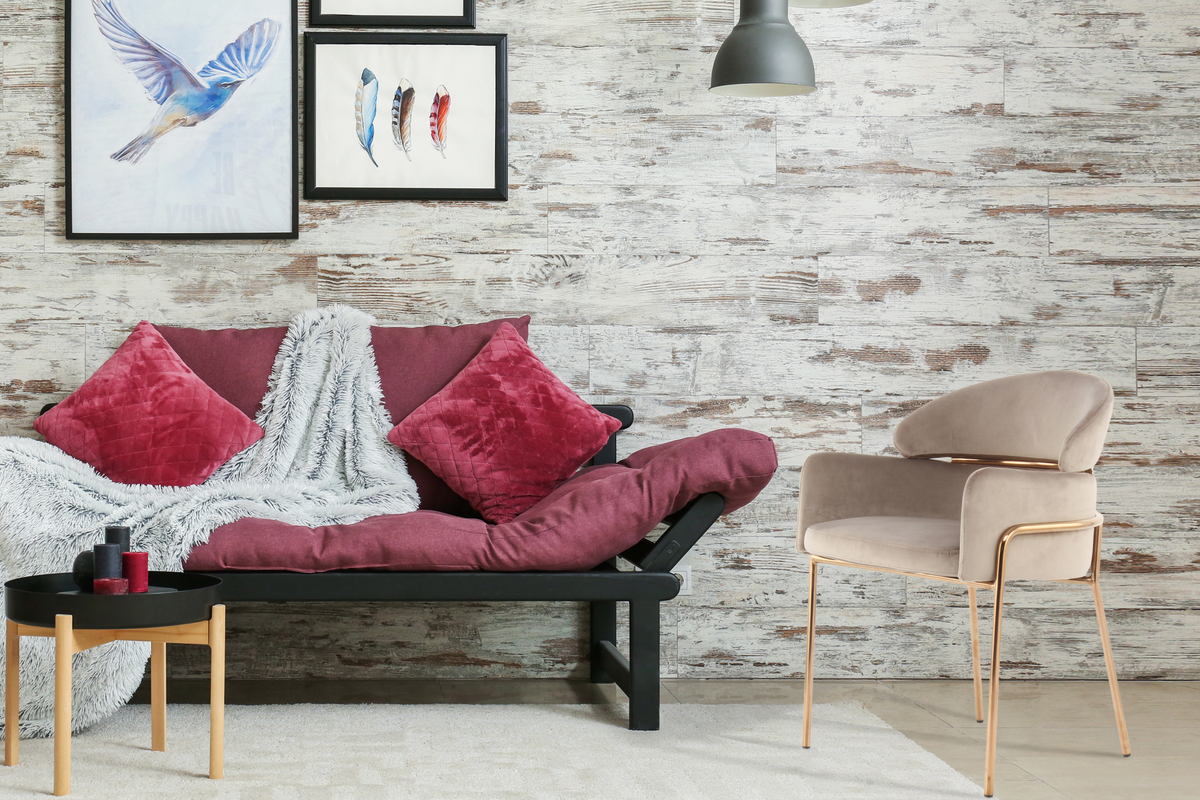 | Besonderheiten: | Samtiger Stoffbezug, ausgefallenes Gestelldesign, pflegeleicht |