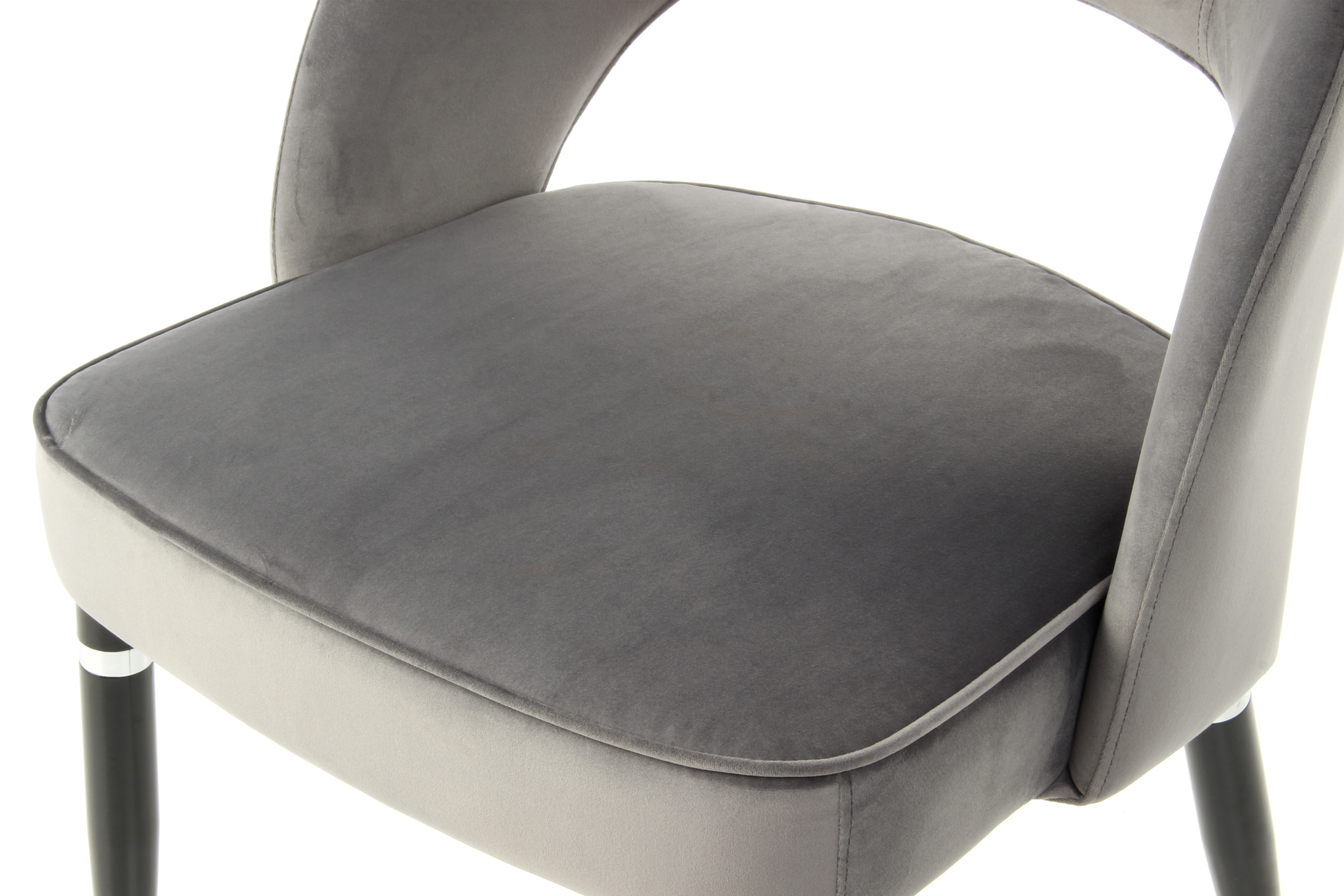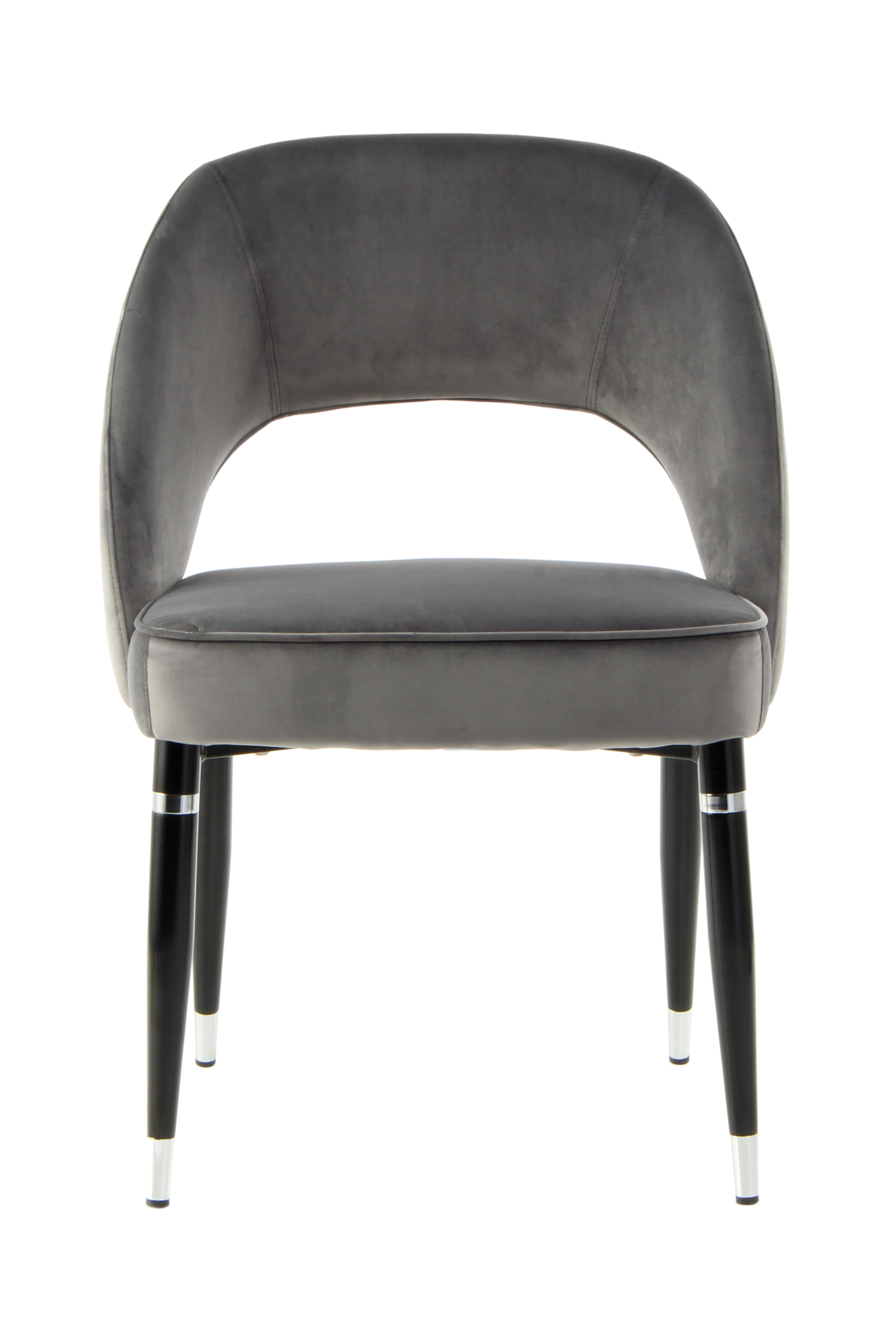 Durch ihren eleganten Look im Retro-Stil überzeugen die Stühle auch optisch auf ganzer Linie. Die Aussparung in der Rückenlehne und die abgerundete Form der Sitzschale zeichnen den besonderen Stil der Stühle aus und bilden in Kombination mit dem Stoffbezug und den eleganten Beinen mit Luxus-Faktor ein attraktives Gesamtbild.