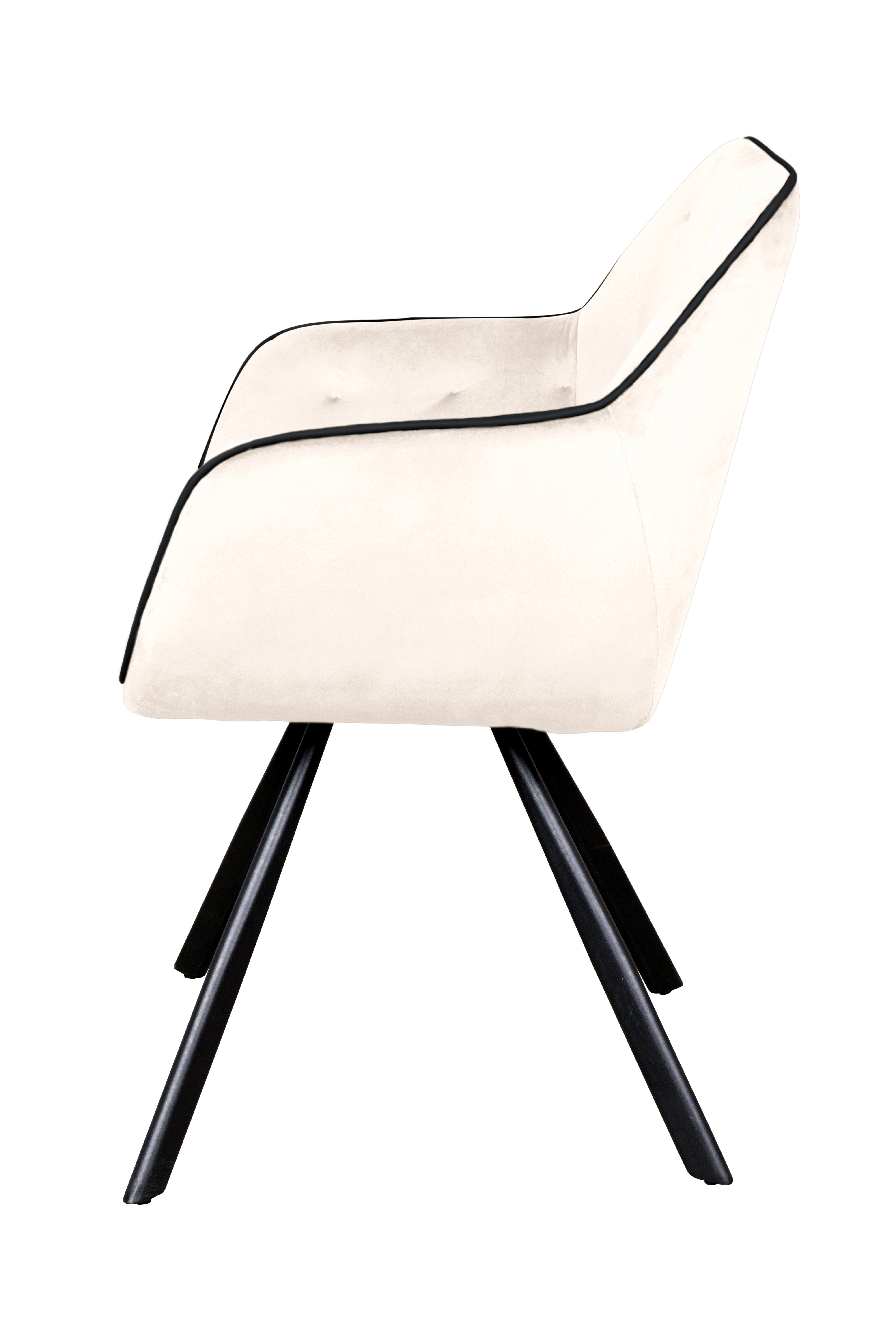 Dieser Stuhl überzeugt durch seinen schlichten und dennoch eleganten Look. Dank des unaufdringlichen Designs kann der Stuhl in nahezu jeden Einrichtungsstil integriert werden, ohne der bestehenden Einrichtung die Show zu stehlen. Er fügt sich harmonisch in das bestehende Raumbild ein und bietet gleichzeitig eine gemütliche Sitzgelegenheit. Die gepolsterte Sitzfläche ist von einem samtigen Bezug umgeben, der dem Stuhl ein elegantes Aussehen verleiht. Eine Ziernaht in der Rückenlehne peppt das schlichte Design etwas auf und sorgt in Verbindung mit den Armlehnen für einen angesagten Retro-Charakter. Solide Beine aus Metall runden das Gesamtbild des Stuhls ab und sorgen für einen stabilen Stand. Genießen Sie das angenehme Sitzgefühl mit Ihrem neuen Esszimmerstuhl. Aufgrund der Stoffbeschaffenheit kann die tatsächliche Farbe des Stuhls von den Bildern abweichen. Durch unterschiedlichen Lichteinfall und verschiedene Streichrichtungen des Stoffbezuges können unterschiedliche Farbnuancen entstehen.