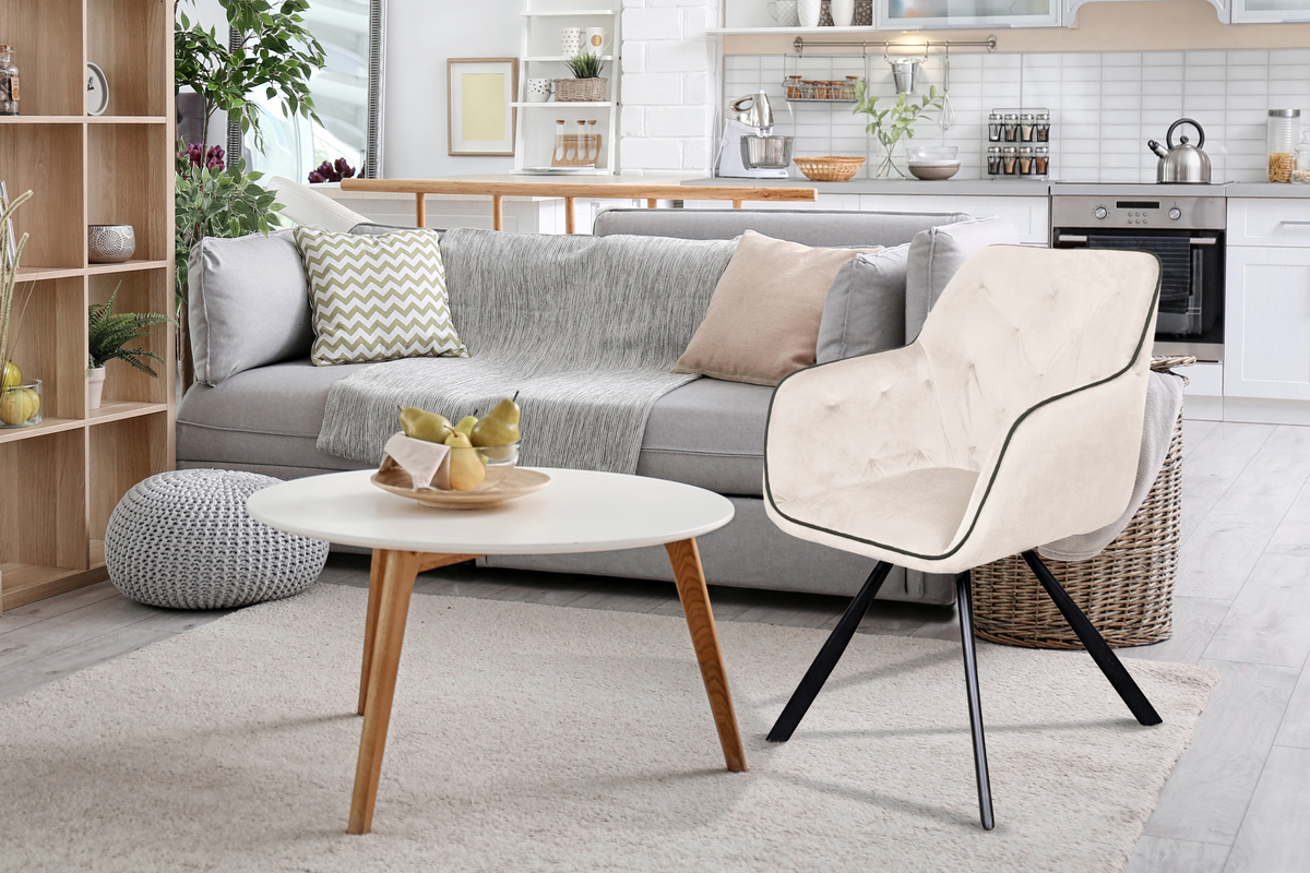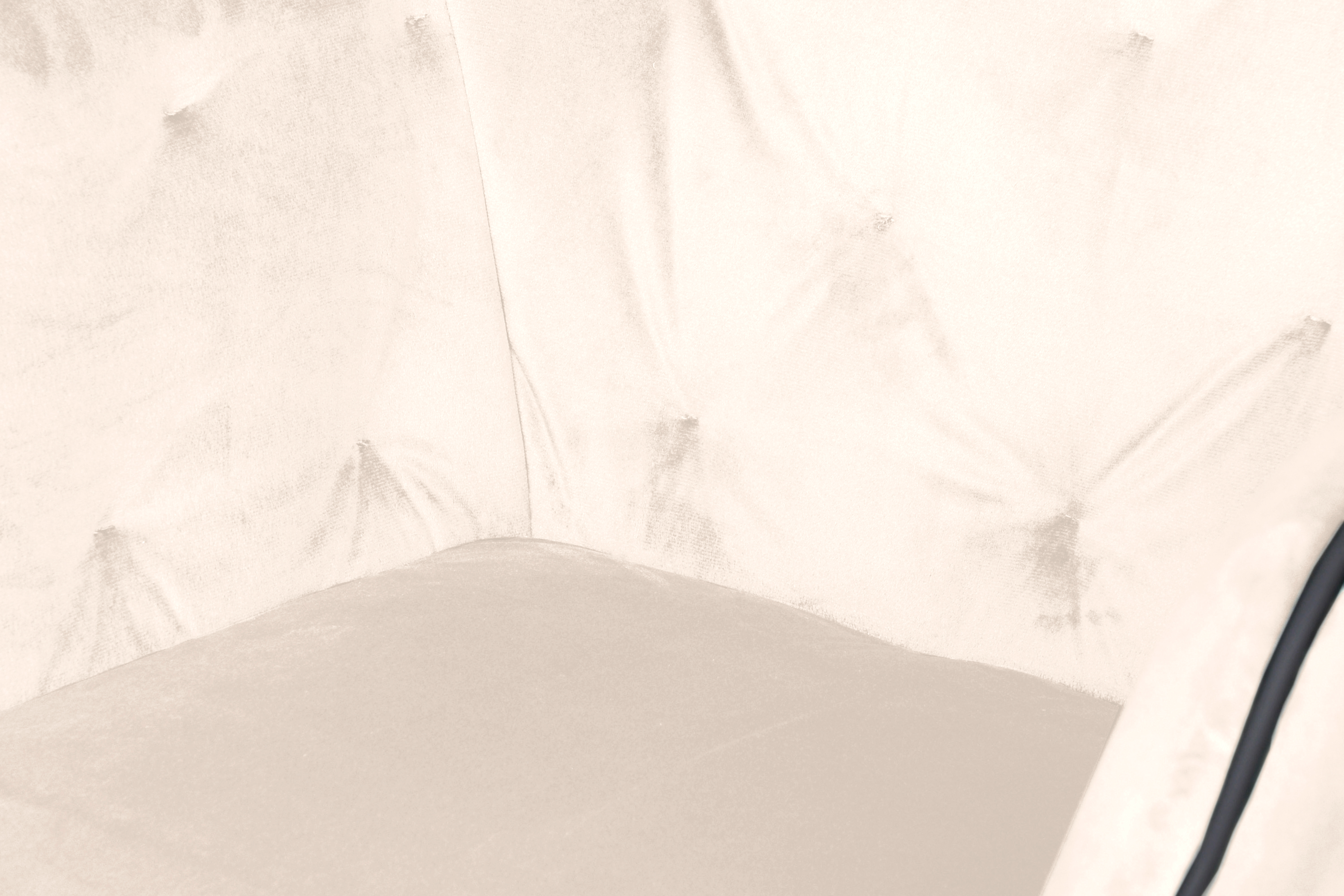 Dieser Stuhl wird mit seinem eleganten und glamourösen Design schnell zum Blickfang im Raum. Der samtige Stoffbezug und das edle Design mit eingelassenen Dekoknöpfen und die gemütliche sesselförmige Aufmachung des Stuhls machen ihn zu einem absoluten Einrichtungshighlight. Unterstrichen wird das Design durch eine stilvolle Kunstleder-Paspel. Sitzkomfort erhalten Sie mit diesem Stuhl durch die abgerundete Form der Sitzschale mit integrierten Armlehnen sowie die weiche Polsterung und den samtweichen Stoffbezug. Eine gemütliche Leseecke beispielsweise kann durch diesen Stuhl gemütlich eingerichtet werden. Wenn Sie den Stuhl gerade nicht als Sitzgelegenheit nutzen, macht er durch seine kunstvolle Optik auch so eine gute Figur. Die Farbgebung im zeitgemäßen Stil lässt sich in verschiedene Einrichtungen integrieren. Stabilen Stand erhält der Stuhl durch das robuste Gestell aus Metall. Die tatsächliche Farbgebung des Möbelstücks kann von den Bildern abweichen. Durch unterschiedlichen Lichteinfall und verschiedene Streichrichtungen des Stoffbezuges können unterschiedliche Farbnuancen entstehen.