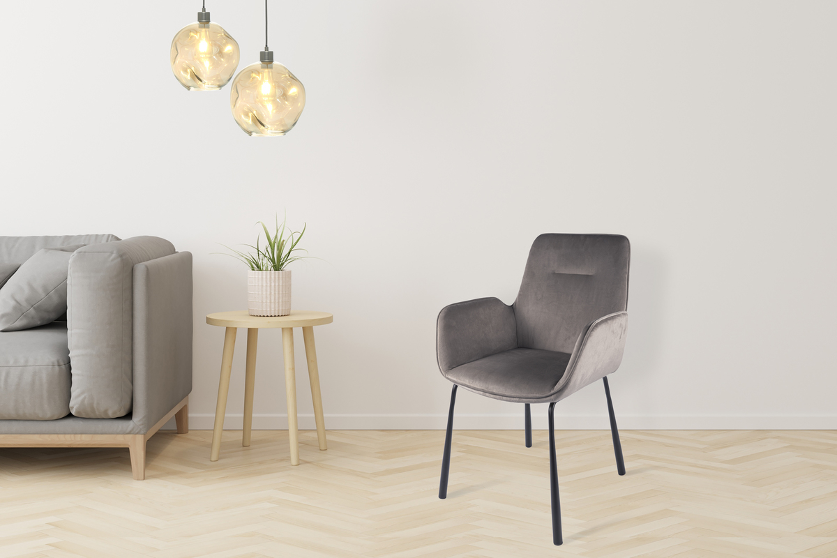 Dieser Stuhl überzeugt durch seinen schlichten und dennoch eleganten Look. Dank des unaufdringlichen Designs kann der Stuhl in nahezu jeden Einrichtungsstil integriert werden, ohne der bestehenden Einrichtung die Show zu stehlen. Er fügt sich harmonisch in das bestehende Raumbild ein und bietet gleichzeitig eine gemütliche Sitzgelegenheit. Die gepolsterte Sitzfläche ist von einem samtigen Bezug umgeben, der dem Stuhl ein elegantes Aussehen verleiht. Eine Ziernaht in der Rückenlehne peppt das schlichte Design etwas auf und sorgt in Verbindung mit den Armlehnen für einen angesagten Retro-Charakter. Solide Beine aus Metall runden das Gesamtbild des Stuhls ab und sorgen für einen stabilen Stand. Genießen Sie das angenehme Sitzgefühl mit Ihrem neuen Esszimmerstuhl. Aufgrund der Stoffbeschaffenheit kann die tatsächliche Farbe des Stuhls von den Bildern abweichen. Durch unterschiedlichen Lichteinfall und verschiedene Streichrichtungen des Stoffbezuges können unterschiedliche Farbnuancen entstehen.